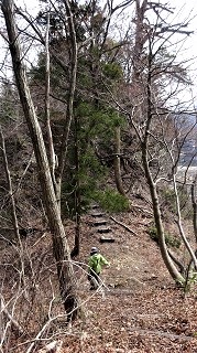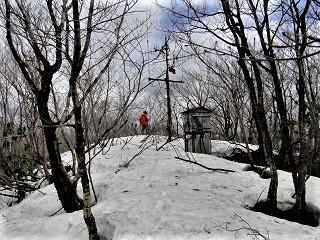![]() 我々は北の方から藪の中を登ってきたが、三角点の南にアンテナが立っていた。その横に器械がおいてある。電源が入っているようで、かすかに音がする。しかも南の方から登山路が上がってきている。どうもこのアンテナと器械の巡視路らしい。 ![]() お天気も良いので、ゆっくりと食事をして一時間休憩。 13.20.下山開始。南から登ってきている道を降りる。はっきりした道である。 ![]() 300メートルほど降ったら、折り返しの作業道の残骸に出た。ぶらぶらと200mほど戻ったら、朝一番に辿り着いた広場に出た。朝着いたとき、ここに登り口があるのは気が付かなかった。登った道を降り始める。 作業道の残骸の藪を下りていったが、谷に降りる藪漕ぎ地点が解らず、そのまま作業道の藪を進みウロウロしていたら、また河合鉱山を見下ろす地点に出てしまった。馬鹿みたい。それでも此処からだと白山が見えるかも知れない。それならば隣接する服部鉱山に出て鍋谷林道に出ようと思ったが、河合鉱山から服部鉱山に出る道が近くに無い。 ![]() ![]() また広場まで戻って、意を決して急な斜面を降りる。凄い急斜面である。前を行く相棒が、藪の少ない方へいったら、つかまる木が無くなって10mほど滑り落ちた。怪我は無いようだ。それを見て私は怖くなって登り返し、わざと藪の密集している地点を、尻で木につかまりながら滑り落ちた。ようよう谷に降りつき、目印の赤いテープを見つけてホッとする。15.45.留めた車に辿り着く。 今回は最初から藪漕ぎ覚悟だったが、思ったより藪が急斜面だったので手こずった。おまけに下山の藪漕ぎで、いつの間にか双眼鏡を落としてきた。結構高い値段だったのに・・・。が、うまい具合に三角点が見つけられて満足である。今度は一度、白山市の方から、鉱山のトラック道を歩いて登ろう。そうすればほとんど藪漕ぎ無しで、三角点に辿り着けそうだ。 |