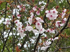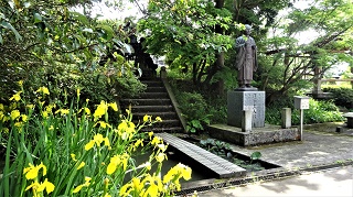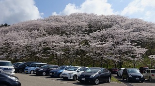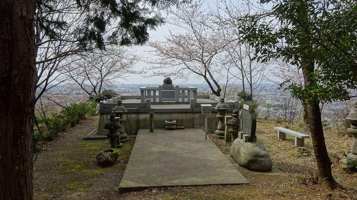 作業道の左手が、ここらあたりで一番高い。見当をつけて入り込んだら、杉林の中が丸く開けて、その真ん中に新しい「四等三角点」を見付けた。この三角点は平成20年の夏に設置されたと「点の記」に書いてあった。生まれたてのほやほやの三角点だ。11.15分。 ![]() この三角点は新しい型で、真ん中に丸いカネが埋め込んである。「四等三角点・国土地理院・№112864」と書いてある。この新型の三角点は、以前、四国の剣山に登ったとき「次郎笈」の頂上で見かけた事がある。石川県内では初めて見かけた。四方に保護石が置かれ、プラスチックの白い標識もある。 ![]() ここを「四十万山」頂上と勝手に認定して記念撮影。山名札を提げようとしたが回りに木が無い。だいぶ離れた杉の木に提げてくる。西のほうが余計開けている。もう少し切ると金沢の眺めが良さそうだ。 ![]() 地図を見ると、この尾根を突ききれば「11号鉄塔」に降りられそうだが、どうも道が無いらしい。女性連れなので用心して林道分岐まで戻り、前回と同じ「11-12号」の鉄塔巡視路に入る。12号鉄塔の傍の竹薮で昼食。12.30分。ここから急坂を降ると石切り場のある林道に出る。前回はそのまま林道を下ったが、今回は右に林道を進む。 ![]() 前回は左に降り、川の対岸にある「額谷遊歩道」に出る道が判らなかったので、今回は右に林道を登ってみた。しばらく歩いたら林道の左に遊歩道の分岐を見付けた。「遊歩道入口」の標識がある。「富樫家御廟谷入口」の石柱もある。入って少し登ったら「額谷石切り場跡」の立て札があり、大きな穴が幾つも連なっている。 ![]() 遊歩道マップの立て札もあり、それに従い右に「展望広場」まで登る。13.20.分。展望は良くない。片隅に祠があり石仏が立っている。ここを「額谷山」と勝手に認定。 ![]() さらに進むと右下に「御廟谷」という塚があった。立て札によれば、「加賀の守護富樫氏の墓域と伝えられる」。また別の立て札に「高尾城の落城の遺骸を葬る」とある。 ![]() 赤い橋を渡れば林道に出る。ここにも遊歩道入口の標識がある。林道をぶらぶらと歩くと「額谷ふれあい公園」に出た。14.00時。 ![]() 公園に出るといろんな花が咲いている。 ![]() こんな桜も満開だ。変わった種類の桜だ。 ![]() これは最近良く見かける「キンポウゲ」だろう。園芸種が広がったものらしい。14.25.みはらし台に登ってきて車に着いた。 ![]() 小松に帰る途中、「揚原山」の「イワウチワ」が気になり、鍋谷林道に入り込んでみた。途中まで登ったら残雪があり、倒木も至る所にあり、途中で引き返した。イワウチワは未だ早いようだ。 鍋谷の村に「ベニバナアセビ」が咲いていた。 2010年03月08日(月)1回 「霊宝山」-額谷ふれあい公園 新聞に里山歩きの記事として「額谷山」と「蓮如上人墓」の記事があった。何時も金沢に出るとき通っている山側環状線のすぐ傍だ。蓮如上人墓は、車で通るとナビに映るので、一度は寄ってみたいと思っていた。新聞記事では墓のある霊宝山から、林道や鉄塔巡視路をたどって、額谷のふれあい公園まで歩いている。 ![]() いろいろ地図をパソコンで引っ張り出して、眺めていたが、登山する山ではないので、地図には道が載っていない。額谷山がどれかも判らない。送電線の印と林道の印で、何とか方向だけが解ったので、半日が空いたので探索に出かけた。 小松から加賀産業道路を走ると、35分位で四十万の丘陵に突き当たる。左に金沢市街が望める所を過ぎて、額谷町の信号をUターンして少し戻り、山裾の空き地に車を留める。四十万みはらし台のちょうど下あたりだ。12.30分。 ![]() 歩道を小松方面に戻り、四十万町東の信号より歩道を離れて直進の坂を登ると、四十万墓苑に出る。12.35分。 ![]() さらに進むと、金網に囲まれた、広い水道局の貯水池に出る。池は覆われていて池とは気付かない。そのフェンスの裏側の真ん中あたりに、小さな広場があり、山側に観音像が安置してある。ここが「蓮如上人墓」への上り口である。12.40分。 ![]() しばらく谷を登ると道が左右に分かれている。どちらを登っても円を書いて墓に合流する。12.50.分。 この山を「霊宝山」というらしい。謂れを書いた石碑がある。この山の下の、四十万町の善性寺の「法慶坊」の信心深きを愛で、蓮如上人はご巡錫の都度、善性寺に逗留して、このあたりの教化の中心として寺は賑わった。逗留中にはこの前山に上り、加賀一円が眼下に広がる風光を愛し、霊宝山と名付け、自分が死んだらこの山頂に葬ってくれと、常々おん物語があったという。 高い土台の上に石の柵があり、その上に変わった形の石が乗っている墓である。 ![]() 眼下には金沢市街が広がっている。 ![]() お参りして奥へ続く林道があるので入り込む。荒れた太い竹の竹林が続く。途中右に鉄塔が見え「長坂線9号」の標識がある。鉄塔まで登って方向を確認。 ![]() 開けた場所の隅に小池があり水芭蕉がある。花は付いていない。 ![]() 林道の分岐に出