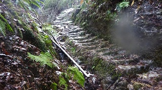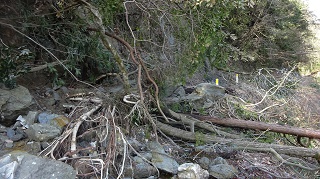 ![]() 三角点横まで荒れた作業道がある。降りてゆくとカモシカがいた。この辺りはカモシカが多い。毎回見かけるぞ。 ![]() 林道まで出てタケノコ畑を見ながら降って行くと、右に林道分岐がある。 ![]() 降りてゆくと水芭蕉のある湿地の側を通る。 ![]() 鉄塔9番に登り昼食。展望がある。 ![]() 海が見える。ジャパンディスプレイの白山工場が見える。 ![]() さらに林道を進むと「⑮蓮如上人の墓」に出る。すぐ後ろが「⑮四十万霊宝山見晴らし台」になっている。金沢市街全部が見えるようだ。 ![]() ![]() ![]() ![]() トリアシショウマ? 白ニガナ ![]() 展望台から急坂を降りて「⑭善性寺」へ立ち寄る。蓮如上人ゆかりの寺らしい。上人の像がある。黄色い菖蒲と白い「カイウ」が咲いていた。 ![]() 山側を歩いて車まで戻る。 ■次回登山は、5/27加賀「神主山」へ■ 2019年03月09日(土)7回 公園-御廟谷-「額谷山」-「四十万山」-蓮如墓 ![]() 体力づくりの春探し散策。今日もS女史と「額谷山」である。女史は9年ぶりらしい。なかうみの里で待ち合わせ、加賀産業道路を走ると40分くらいで「額谷ふれあい公園」に着く。今日だけお天気が良いようだ。 ![]() トイレを拝借して、ふれあい公園の中を横切り、左側の花壇の一番高い地点より林道を歩きだす。遊歩道入口より下に降り赤い橋を渡り、竹林を登って行く。 ![]() 10.10分頃「御廟谷に到着。富樫一族の墓は、何時も良く手入れがされている。 ![]() 御廟谷の上まで登ると、気持ちの良い尾根歩きとなる。 ![]() 分岐を直進して10.35分に「額谷山」に到着。この展望広場を勝手に「額谷山」の頂上にした。抹茶を点てて休憩。祠の石仏の首は三年前から無い。展望台は壊れてしまった。 ![]() 抹茶休憩を済ませて「石切り場」に降りる。石切り場から階段を降りて林道へ降りる。 ![]() しばらく林道を降りて、左に鉄塔巡視路を登り出す。11.25分。長坂線12番の標識がある。タケノコ畑を登って行くと12番鉄塔の近くに出る。 ![]() 12番鉄塔より、上に見える13番鉄塔まで進み、鉄塔の裏山に、高い場所を目指して入り込む。道は無し。杉林の中は簡単に歩くことが出来る。古い作業道を越えた高みに「4等三角点・四十万」がある。ここを「四十万山」と勝手に命名してある。辺り一面藪であるが、日の当たる場所で昼食・コーヒータイム。12.00時。 食事を済ませて下山開始。作業道を降りると舗装された林道に出る。右へ降りて、さらに分岐を今度は左へ降りる。「鉄塔9番」の標識がある。やがて鉄塔9番に登ると平野が見える。 ![]() 13.25分に「蓮如上人の墓」に到着。ここは霊宝山と云うピークである。墓の前が「霊宝山見晴らし台」となっている。すこぶる展望良し。 ![]() 蓮如上人の墓より前の坂を降りて、山側環状線を歩いてふれあい公園の駐車場まで戻る。車に到着14.05分。今日見かけた花を載せて置く。春はもうすぐと確信。 ![]() ![]() ![]() オウレン ツバキ シキミ ![]() ![]() ![]() ウメ イヌフグリ ![]() ![]() ![]() ヒメオドリコソウ ツクシ キンポウゲ 高尾城跡見晴らし台 ついでに近くのS女史がまだ歩いていない「高尾城址見晴らし台」をに登ろうと、登山靴を履いたまま向かう。三年前初めて訪れた時、そこが桜の名所だったので驚いたが、今回も驚いた。桜は咲いていないと思っていたのに、なんと早咲のサクラが何十本も咲いていた。カメラマンも何人も居て撮影している。 「伊東小室桜・六十本・植樹・寄贈・野々市市・塩田 卓」と云う標識の桜らしい。見晴らし台登り口から頂上まで、何本も咲いていた。 ![]() ![]() ![]() ![]() 金沢の里山②卯辰山・野田山・満願寺山へ飛ぶ 一足早い花見を終えて帰宅途中。加賀産業道路に車を留め「白山」を撮る。 ![]() 2018年03月24日(土)6回 公園-御廟谷-石切り場-公園 ![]() 一週間前にキゴ山を歩いたとき、額谷ふれあい公園の前を通った。「額谷山」は雪らしきものは見えなかった。今日は額谷ふれあい公園から春探しの散歩である。金沢山側環状線の「額谷ふれあい公園」に10.45分到着。今日も暖かくて天気が良い。公園の奥から林道へ出る。黄色い花の咲いている木。 ![]() 梅の花も満開 ![]() 11.15分、林道から遊歩道に降りてゆく。赤い鉄橋を渡って、荒れた竹林を登って行く。まだ残雪がありめちゃくちゃ歩き難い。 ![]() 11.40分に御廟谷に到着。富樫家の墓域との事。マンサクとツバキが供えてある。 ![]() 御廟谷の正面塚の隣に、小さい仏がある。ここにもマンサクとツバキ。近くで採ったらしい。 ![]() 小さい花、名前が出てこない。「オウレン」だ。 ![]() 分岐を今日は、広場の方へ登らず右に石切り場へ直接進む。石切り場に12.00時到着。日当たりの良いベンチで昼食。 ![]() 石切り場から、荷物を置いて展望広場まで登り返そうと登ってみたが、残雪が多数あり倒木がひどく、足跡もなく、額谷山(展望広場)を諦めて林道へ降り、林道をぶらぶらと降りだした。この林道にも石切りの跡がある。途中「四十万山」に登る巡視路があるが、今日は道が悪そうで