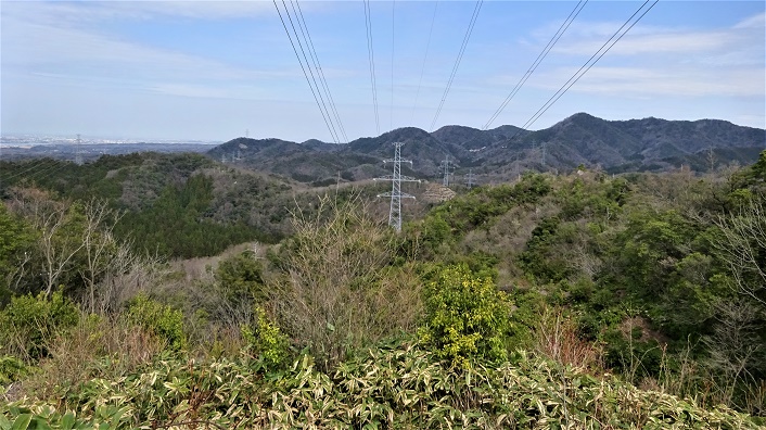 ![]() 雑木林の中で、わずかに切り開かれているが、だんだん藪に戻りつつある。展望なし。 ![]() 「イカリソウ」が咲き出した。 下に続く ②▲「滝ヶ原」四等三角点 ![]() 滝ヶ原町の通ってきた道を車で戻る。道の三叉路に鉄塔がある所より、那谷寺の方へ進むと、すぐ左側に神社がある。神社の右に林道があるので入り込む。地図では三角点の上を、送電線が通っているので、どこかに鉄塔の登り口があるはずである。地図には送電線の線が載っているが、鉄塔の場所の記入が無くて不便だ。右側に登り口がある筈なので、右ばかり見ていたら、送電線の下を潜り抜けてしまった。広場があり「ムラサキケマン」が咲いている。 ![]() Uターンして戻ったら、巡視路案内の標識は、道の反対側にあった。「第二福井火力線№95」と書いてある。谷を20mほど入ったら、右の斜面にプラスチックの階段があった。10分ほど登ると「大聖寺線№11」の鉄塔に着いた。 ![]() 此処は送電線が、二本平行して走っている所で、№95の鉄塔は向かい側に見える。南に向かう送電線の先に鉄塔が見える。あそこ辺りが三角点だろうと、「大聖寺№12」の鉄塔へ向かう。10分ほどで「№12鉄塔」に到着。 ![]() 直進すると「大聖寺線№13」に続くと思われるが、右折して「第二福井火力線№94」に向かう。突き当たりにその鉄塔はあった。海岸線がわずかに見える。 ![]() その手前の、巡視路の真ん中に三角点はあった。