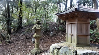 全然見晴らしは無し。それでも、藪の中では無くて、辺りが広く刈られていたから良かった。もしも藪の中だったら、こんな平坦な場所にある三角点は、探すのが大変だ。 写真を撮って、鉄塔まで戻ろうと思ったが、広い尾根で方向が判らなくて、中々鉄塔に出ない。いつもの事ながら難しい。鉄塔の向かいのピークに入り込んだようだ。ようやく鉄塔が見えてホッとする。この後「河原」三角点を確認に行く。 ⑤▲「河原」四等三角点 ![]() 2010.05.03.連休の三角点探訪である。日用と横北を確認。この後、河原と狼谷を探しに行く。横北三角点より降りて車に乗り、勅使町の方へ戻る。勅使の信号を直進し、町を抜けた所で、左折したら小学校に出た。学校を右に回り込んだら、後ろに神社があった。神社の境内に車を乗り入れたら、境内の目の前に三角点があった。神社は諏訪神社で、鳥居をくぐった右の境内の隅にある。 ![]()