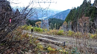 2021年11月14日(日)3回 64歳の誕生日が日曜日になった。天気もあまり良くないし、近くの最近登って居ない「有形山」を歩く事にした。11年前に三角点探訪で、林道を登りつめ藪漕ぎで「三角点」到着。6年前は林道と巡視路で「最上鉄塔」往復。今回は6年ぶりの「3回目登山」である。登山目的で登る人は少ないようで記録はあまり見かけない。 ![]() 白峰から市ノ瀬方面に入ると、町はずれに「緑の村」があり、道筋に「岩根神社」が建っている。白山開祖の泰澄大師創建との事。ここに車を留める。 岩根神社は風嵐集落の産土神として、白山登拝者の崇敬を集めたとの事。振り返ると「大なだれ山」が見える。 ![]() ![]() すぐ向かい側に大きな林道入口がある。この林道は地理院地図では、有形山に延びる林道に続いていないが、実際には繋がっている事は確認済み。 ![]() 橋を渡る。 ![]() 林道分岐。ここから地図の林道に続いている。 ![]() 今は車でも入り込めるようだ。 ![]() 林道歩き。この山は杉林が多くて、あまり紅葉は期待できない。 雪の山が見える。最近天気が悪い日が続いていたので降ったらしい。どこだ。チブリ尾根か?。 ![]() ![]() 11年前からの案内板がまだ残っている。「小原山みちしるべ」になっている。ここは分岐で県道から道が登ってきている。 ![]() ムラサキシキブ。 ![]() まだ林道 ![]() 2つ目の案内板。ここも分岐である。頂上は東だが右に回っても道が繋がっているように見える。 ![]() 前回は何処を通ったか記憶があやふや。地図を見ると右が近かそうなの゛右に入る。 ![]() 鉄塔が見えてきた。「市ノ瀬線・18番」鉄塔だった。 鉄塔に上ったら白峰の集落が見えた。 ![]() 集落からトイで水が川に落ちている。あそこを通って来た。 ![]() ![]() 車道終点に車がいた。頂上鉄塔が見えるから、巡視路が続いているようだが、少々藪で判り難そうだ。林業作業らしい車の人の言う通り、さっきの分岐まで戻って、また林道を登る。 途中で鉄塔巡視路が道を横断していた。ここへ上れた様だぞ。下が17番で、上が16番と書いてある。 地図を見て、ここは未だ林道を歩く。稜線に雪山のピークが見える。どこだ?。 ![]() 「市ノ瀬線・16番」の鉄塔の上に出た。下に17番と18番の鉄塔が見える。 ![]() ![]() 反対側の斜面に「市ノ瀬線・15番」鉄塔への巡視路入口がある。ここを入る。 ![]() 送電線の下を一直線に巡視路が続いている。急坂となる。 「市ノ瀬線・15番」鉄塔通過。 ![]() ![]() 一度林道の終点らしい所に出て、更に「最上鉄塔・14番」を登り出す。 ![]() 最上鉄塔に到着。歩きが遅くて13時近くになったがここで昼食。 ![]() 鉄塔巡視路はこの先降っている。白山の方は木があり見えず。別山辺りがちょっと見える感じ。今日は私の満84歳の誕生日。S女史のリュックの中から、魔法のようにいろいろの物が登場し、あっという間にバースデーケーキが出来上がる。84のローソクに火を点けて歌を歌って吹き消す。誠にありがとう御座います。 ![]() ![]() 今日は風もなく寒くもない。無粋の老人は、ホットコーヒーでケーキをパクつく。食欲だけはあるが身体にガタが来ていて、そろさろ山徘徊も終焉かなといつも考えている。天気が段々悪くなってきた。このまま下山でも良いのだが、ケーキを食べたら元気が出てきて、有形山の頂上三角点まで行ってくる事にした。 ![]() ![]() すぐ横の藪に、赤いテープが続いている。多分これは三角点まで続いているに違いない。荷物を置いて出発。 ![]() 一度降ってまた登る。向こうの方が高いな。 ![]() 予測通り赤いテープは参加店まで続いている。11年前は林道の終点から三角点を目指したので、何処を通ったか記憶がない。藪は薄かったり少し濃かったり。変形ブナがある。 ブナ林の中の三角点に到着。チャムラン会の山名札がある。展望無し。昔提げた加賀の里山逍遥の会の山札は無かった。 ![]()