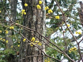 マンサクが咲いている。もう春だ。マンサクは春にまず咲くが語源らしい。【これはマンサクではなかった。ダンコウバイらしい。】