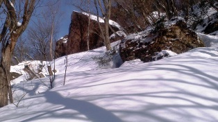 9時40分、ロックガーデンの分岐点に到着。ここまでほとんど積雪無し。コースより外れてロックガーデンを周遊する。ここに入り込むと雪が残っている。