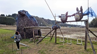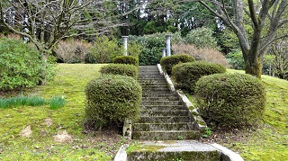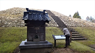 ![]() 能登大橋・和倉温泉の標識。平地と海が見えるが、老人は目も老人で良く判別出来ない。 ![]() 富山湾の「虻ガ島」が見える。その上には立山連峰が見えるらしいが、今日は霞んでいる。 ![]() 一等三角点は大きい。石川県と富山県の県境にあるが、富山県の三角点に分類されている。三日前の清水山に続き、一等三角点の連チャンである。 下山開始。もと来た道を戻る。 ![]() 今回は登山路がよく整備されていた。前回はこの池の横の道は藪の中だったぞ。 ![]() 平町から石川県側の石動山に出る予定で、車道を登って行く。立山連峰が見える。天気が良すぎて霞んでいる。もうそろそろ石動山の前に着くかな、と考えていたら突然の通行止め標識。実は今日は石動山を歩かずに、「モーゼパーク」でも歩こうと予定していた。車道に雪が残っている。とりあえず戻るしか方法は無い。遠回りだー。13.30分。■「モーゼパーク」に移動。下稿へ■ ![]() 2021年03月27日(土)8回 モーゼパーク散策 伝説の森モーゼパークは興味があったので、ドライブの途中に登り口を見付けた事がある。その時は時間が無くて登れなかった。一度歩いてみたいと考えていた。 モーゼは40年の歳月をかけ、ユダヤの民族をイスラエルの地へ導いた後、シナイ山に登った。そこからモーゼは天浮舟に乗り、能登宝達山にたどり着いた。その後、583歳まで余生を宝達山で過ごし、三ッ子塚に埋葬された。 石動山の手前で通行止めにあい、能越自動車道まで降り、氷見から山越えで能登に出た。宝達志水町の河原町でウロウロしたが、何とかモーゼパークの駐車場に到着。15.00時。 ![]() 駐車場には他に車は一台も留まっていない。しだれ桜がピンクの花を付けている。 ![]() ![]() ポケットパークを周って、しだれ桜の横から、ふれあいの小径を登って行く。 ![]() 途中にモーゼの墓記帳所がある。パンフレットあり。 ![]() 分岐を、ミステリーヤードの方へ進む。 ![]() ロマンの小径と云うらしい。 三ッ子塚古墳に到着。案内板によれば「古文書」にモーゼの記載があるらしい。能登宝達で「十戒」授かったらしい。 ![]() ![]() 横に登る道があった。古墳が三基あるらしい。登り口にあった案内板に「2号墳がモーゼの墓」と書いてあった。「3号墳テラス浮船展望」と書いてあった。 ![]() 2号墳に登る道は無く、3号墳に登る道があった。登って見たら「モーゼ大聖之零位」の標識が建ててあった。 ![]() 「テラス浮船展望」と云うだけあって海の方が見える。 ![]() 古墳の裏を一周して、登り返して戻って行く。 ![]() 「安息の広場」があったので登って見た。あずま屋があった。 白いショウジョウハカマがあった。 ![]() ![]() ![]() モーゼパークから降りて、隣町の山崎に立ち寄る。「金崎神社」がトトロ神社と呼ばれているらしい。神社前の空き地に「トトロ」が造ってあった。 ![]() ![]() 神社に登って見たら、森の中の薄暗い、苔むした境内。巨大なスタジイの木。トトロさん、隠れていないで出て来なさーい。 ![]() ■次回登山は、3/31小矢部 「矢立山・砺波山・源氏ヶ峰」へ■ 2020年01月25日(土)7回 雨の宮古墳より「雷ヶ峰」散策 真冬のはずだが雪が無い。それでも寒いので健康登山と称して、低い里山ばかり徘徊している。今日はS女史がまだ歩いていない「雷ヶ峰」と「赤蔵山」を案内する。9.00時に小松を出て北陸自動車道から「のと里山海道」を走り、柳田インターで降り、七尾に向かって県道2号を走る。能登部交差点で左に山に入るとトンネルがあり、抜けると右に「雨の宮古墳群」への標識がある。 ![]() 舗装してある道路だが、狭い所もある。10.20分に駐車場に到着。同じ石川県だが能登はなかなか遠い。 ![]() 資料館は12月から3月いっぱいは休館だった。トイレも締まっている。 ![]() 資料館の裏に遊歩道がある。古墳に登って行く。 ![]() 1号古墳と2号古墳の間に登り着く。右が1号古墳で左が2号古墳である。まず1号古墳に行く。獣除けの金網がある。 大きな「前方後方墳」だと書いてある。ビラミットみたいだ。 ![]() ![]() 古墳の登り口に、小さな社がある。「天日陰比咩神社」と云うらしい。 ![]() 一番高い所に、三角点を埋めた容器みたいなものがある。中は見えない。