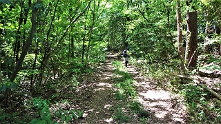 2015年04月07日(火)3回 橘町より細呂木まで「北国街道」往復 櫻もそこそこ満開に近い。しかし花冷えである。寒い。風もある。しかし雨は止んできた。久しぶりにどこか少し歩こうと昨日から考えていたが、どうも不摂生で太り体が重くて一人で山登りには自信がない。そこで春には歩いていない旧北国街道の「治郎平山」を歩く事にした。 自宅を9.00時に出て、コンビニにより、加賀インターのガードを潜り橘町の入口に着く。高速道路沿いの舗装道路が広いので車を置く。9.50分に町に向かって入って行く。江戸時代にタイムスリップする入口である。コブシの木、桜の木、レンギョウなど見える。 ![]() 静かな町中を抜け、町はずれの多知波那神社の前を通る。さくらが満開。茶屋坂を登る。 ![]() ![]() 茶屋坂に地蔵がある。三体の像がある。覗いてみると地蔵かと思ったが、地蔵様ではない様だ。水仙が活けてある。 その先に「橘の宿跡」がある。直進が北国街道。右に吉崎道が分岐している。 ![]() ![]() ![]() ![]() ヒメオドリコソウ 今年初見のホウチャクソウ スミレ 北国街道は一度舗装路に出る。両側がゴルフコースになる。 ![]() ゴルフ場を抜けると東側が開ける。一面の梨畑が広がる。白い花が咲きだしている。向こうの山の上に電波塔が集まって建っている。「熊坂妙高山」だ。 ![]() 西側に「国境一里塚跡」の碑がある。加賀と越前の国境である。番所があったらしい。 ![]() 誰一人通らぬ、緩やかな尾根の、北国街道をぶらぶら。鶯が上手に鳴く。 ![]() ![]() ![]() ![]() ダイコンの花? 今年初見のイカリソウ 今年初見のシュンラン ![]() ![]() 加賀方面より越前方面へ入国する人々をお迎えして旅の疲れをねぎらった名号塔。 グレートトラバースの田中陽希君ばりにポーズを取ろうと思ったが失敗。 シロべナヘビイチゴ 今回の北国街道の最高地点に「往来安全の名号塔」がある。前回歩いた時は、南無阿弥陀仏の名号塔一本だったが、今回は隣に「夢絆」の石塔が建って二本になっていた。二本の石とも同じような石である。隣に夫婦石と云う石板が立ててある。面白い話なので下に載せた。 ![]() ![]() 夫婦石を過ぎると両側が開けてくる。西側は北潟の向こうに風力発電のプロペラが回る。 ![]() ![]() 東側の方も開発が進み、山がむき出しになっている。手前のピークか、そのうしろ辺りに治郎平山三角点が在る筈である。藪をあまり漕がなくても登れそうな雰囲気だ。だが今回は頂上は横目でにらみ通過。 ![]() のこぎり坂と云う急坂を降りると、親鸞聖人の歌碑がある。 さらに降ると細呂木の町になる。自動車道路を横断して川を渡った所に「細呂木関所跡」の碑がある。この先街道は何処へ続くのだろうと、町中を少し歩いたが何処へ続いているのが不明。 ![]() 11.40分に町中の善照寺と云う寺まで行って、同じ道を戻る事にした。12.20分頃、夫婦石付近で座り込んで昼食。13.35分に車まで戻り着く。花冷えで少し寒かったが、すぐ近くで鶯が鳴き、春を満喫できた一人歩きだった。 帰りに五月に全国植樹祭のある、小松の木場潟の桜を見て帰る。花冷えで寒い。 ![]() ●次稿2015年第22回登山は、4/22-23新潟県「越後丘陵公園」へ● |