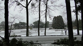 2012年12月12日(水)2回 橘町より細呂木手前まで「北国街道」往復 先日来大荒れ。山での遭難騒ぎがテレビで流れる。今日もみぞれが降ったり止んだり。何処か登りたいと思っていたが、やめにして、二週間前に見付けた旧北国街道を歩く事にした。治郎平山の近くで、北国街道の面影を残すのは、ここから1300mの間だけである、との看板を見たからである。今年の1月に、加賀IC近くの橘町で、三角点「橘」を確認に行ったことがある。その時「旧北国街道」の標識を見付けた。ここが北国街道だったのか―、と思っていたが、そこから治郎平山まで街道が続いていることを発見。未だ一度も歩いていないので踏破する事にした。 ![]() 11.20分頃に家を飛び出し、加賀ICで下車、ガードを潜って橘町へ行く。高速道路の側道より橘町に入る所に「旧北国街道」の新しい石碑がある。高速道路の下の道が広いので車を置き、雨具を着て長靴を履き、小リュックを担いて、傘を差して石碑より向こうに見える橘町に向かって歩き出す。 ![]() 11.50分。誰も居ない、街道筋みたいな感じがする通りを歩いてゆく。 ![]() 11.55分。町はずれに神社がある。村社「多知波那神社」の額が上がっている。橘の当て字らしい。正月が近いので新しいしめ縄が下がっている。一月に来た時は、この石段を登った所から藪を漕いで橘三角点を確認した。 ![]() 12.00分。直ぐ「茶屋坂」になる。道しるべに寄れば、この坂を挟んで上橘と下橘に分れていた。上橘は宿屋や番所があった。下橘は駅馬を飼っていた。石の階段は墓地に至るもの。墓地を抜ければまた道に戻れる。 ![]() 12.05分。「水汲坂」の石碑に出る。左下から坂が登って来ている。下に水場の池があったらしい。 ![]() 12.07分。すぐ横に「橘宿跡」の石碑があった。また御影石の「由来記」に寄れば、701年、大宝律令制定で駅制が施行されてより、北国街道の宿駅として開けた。親鸞聖人越後流罪の時この街道を下向し、蓮如上人吉崎御坊に滞在中、橘茶屋に憩う。一向一揆の激戦地ともなり、藩政時代は参勤交代の本陣が設けられた。加賀越前の国境の要所として番所が置かれた。俳人芭蕉も加賀の千代所も橘茶屋に立ち寄ったとの事。 ひっそりとして誰も居ない、何もないこの地で、昔の事を考えてしばらく立ち尽くす。 昔の地図が書かれた陶版が置かれている。 ![]() ![]() 加賀の千代女の句碑がある。「四季折々 殊更春の うへ木茶屋」宝暦十二年三月末と書いてある。また「由来記」の中に「旅立つも さつきのあとの身なりけり 我に宿かせ たちばなの里」大僧正道興と云う歌も載っている。 ![]() すぐ横が道が分岐していて、右・吉崎(蓮如道)、左・細呂木(一里)と書いてある。千代女はここを右に折れて吉崎へ行った。又、奥の細道本文に寄れば、芭蕉も前日は大聖寺の全昌寺に泊っているので、ここから吉崎の方へ降りて行ったのだろう。 ![]() 12.15分。先へ進んだら大きな舗装道路に合流した。両側ともゴルフ場である。雪が積もってゴルフ場は休業状態のようだ。広い舗装道路を歩いてゆく。 ![]() 12.27分。ゴルフ場の正門を通過。広い駐車場が見える。この道路はゴルフ場に至る道路なので、この先細い旧北国街道に戻り、舗装は無くなる。 ![]() 12.38分。左手が開けている。一面の大きな梨畑がずーっと広がっている。手前のみちしるべに寄れば「橘村御使者改番所」のあった所。加賀と越前の国境に最も近く設けられ、各地から加賀藩、大聖寺藩に要件ある人は、必ずこの番所で許可を受けなかったら、領内には入れなかった。 下に「みちを知る会」と書いてある。と思い込んで読んでいたが、よく見たら「みきを知る会」だった。みきとは三木町の事で橘町の隣の町である。三木町から橘町へと街道が続いている。三木町が立てた標識のようだ。 ![]() 12.39分。その先に「加賀・越前国境一里塚跡」の碑があった。少しこんもりと小山があり大きな木が生えている。地図を見るとここからしばらく石川福井の県境を歩く事になる。 ![]() ここからが本当に昔の北国街道の面影を残す道となる。 ![]() 今は車でもようやく通れるような道だ。昔は賑やかで、大名行列も通ったという。 ![]() 12.49分。南無阿弥陀仏と彫った大きな石碑に出た。「お国境名号塔」と書いてある。加賀方面から越前へ入国する人々をお迎えして、旅の疲れをねぎらった名号塔。あわら市教育委員会。 ![]() 13.01分。またも南無阿弥陀仏と彫った大きな石碑に出た。台座に往来安全とある。「往来安全の名号塔」らしい。昔この辺りに細呂木茶屋があったと伝えられている。と書いてある。 ![]() 13.04分。開けた見覚えのある所に出た。ここまでが街道の面影が残っている区間だ。金津町指定文化財(史跡)旧北陸道、と書いてある。前回この下あたりから藪を漕いで、治郎平山三角点を確認に登った。 ![]() 海側は、下に北潟湖が少し見え、大きな発電用風車が何台も回っている。前回はここに車を置いた。 ![]() 治郎平山は、山側のこのピ