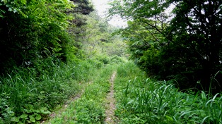 一等三角点だけあって、訪れる人は多いようだ。加賀低山徘徊部の太田さんの札もある。 ![]() 見晴らしは良いはずだが。雑木林の中で展望は無し。宝立山は横に繋がりピークが三つほどある。次のピークを目指す。 ![]() 車で林道分岐を左に、尾根を少し進むと鉄塔がおる。道が狭いのでここに車を置く。 ![]() 林道から尾根道に入ると「黒峰の林叢」と云う標識を見付けた。 ![]() ピークの頂上に、ブナの林に囲まれて祠があった。黒峰大権現が祭ってあるとの事である。地理院地図に471mの記入があり、ここが宝立山の最高地点である。このピークを宝嶺山とも云うらしい。 ![]() この権現が祭ってあるので、木が伐採されなくて、ブナ林が残ったものと思われる。珠洲市の天然記念物に指定されている。 ![]() この先にもう一つピークがあるが、行かなかった。道はあるか無いか不明。この山は三山形式になっており、真ん中が祠のある「宝嶺山」。両脇に三角点のある「宝立山」と「黒峰山」である。 続いて車で高州山に向かう。 ●続きは下稿「高州山」へ続く● 2013年06月08日(土)2回 宝立-「高州山」初歩き-鉢伏のA ![]() 宝立山から元来た道を戻り、輪島市の方へ抜けたら、時国家の前を通り曽々木海岸に出た。「高州山」を目指す。海岸線を輪島市の方へ戻る。だいぶ戻って輪島市が近くなった菰沢の鵠巣小学校辺りから舗装された林道に入る。国定公園・薬師堂 高州山登山口の石碑がある。頂上に自衛隊のレーダー基地があるので、走りやすい林道である。 頂上に近ずくと、右手下の窪地に「薬師堂」が見えた。嶽薬師如来が祭られている。左手に大きな駐車場らしきものがある。 ![]() ![]() その先、薬師堂の上あたりに高州神社の鳥居があった。林道のこの先は門があり、自衛隊の管内で立ち入り禁止になっている。13.00時。鳥居前に車を置く。 ![]() 石段を登ると高州神社が建っている。5月8日が高州山の山開き。嶽開きとか嶽祭りと云われ、輪島塗職人が登山して酒宴を楽しむ、とか。すぐ隣がレーダー基地で金網で仕切られている。 ![]() 頂上に「雲神句・高州神社奥宮塔」が建っていた。テントが張ってあり男が一人ベンチで食事中。輪島の人で、下から歩いて登ってきたらしい。 ![]() 「いしかわの森林50選」高州山のブナ林の立札がある。なかなかの見ごたえのあるブナ林である。遊歩道を降る。結構広い。 遊歩道を降りたら駐車場の隣に出た。 ![]() 頂上からの展望は余り無かったが。車で少し下がった林道からは「輪島」の町が見える。 ![]() この林道途中から「鉢伏山」に続く林道の記入がある。今日はついでに「鉢伏山」の一等三角点も探す予定。 ●続きは下稿「鉢伏山」へ続く● 2013年06月08日(土)2回 宝立-高州-「鉢伏山」初歩きB ![]() 13.40分。高州山からヘアピンカーブを、三つか四つ曲がった左のカーブ部分に車が置け、鉢伏山・高州山の案内図がある。ここから分岐の林道が始まっているが通行止めになっている。覗いてみると草茫々。無理矢理通ったタイヤ跡もあるが、自家用車では無理のようだ。カメラだけ持って歩き出す。 ![]() 平坦な道だが、草が腰辺りまで伸びている所がある。 ![]() 14.00時、20分歩いたら広い舗装道路に合流した。その先が三差路になっており道路標識があった。直進は「柳田村・大箱」。左に降ると「輪島市・深見町」と書いてある。 ![]() 直進して5分ほど進んだら、また三叉路に出た。左に「林道鉢伏線」がここを起点として降りている。この三叉路の尾根に「森林浴の森・能登町」鉢伏山の標識があった。この変わった標識の横を山に向かって入り込む。 ![]() 10分も掛からずに遊歩道は三角点に到着。