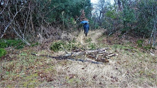 三角点は櫓の下から白山の方へ30mほど入り込んだ藪の中にあった。 ![]() 今日はこれから「実盛塚」までを往復する予定。健康維持徘徊だ。反対側の作業道を降りて実盛塚を目指す。 ![]() 「石川病院」の前を通る。 ![]() 途中から農道を降り、白山を見ながら散歩。 ![]() 前方に平らな台地の松林が近づいてくる。あの山の中に「三角点」と「実盛塚」がある。 ![]() 山裾に到着。タブレットのヤマップ地図を見ながら、少し遠回りをして作業道に入り込む。色々道がありここは三差路だ。 ![]() 作業道の横が小松の林で、ここから入り込む。すぐに三角点は見付かった。以前に一度探しに来ているが、全然記憶がない。 ![]()