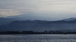![]() ここから地図を見ながら、直接「実盛塚」へ出る作業道が無いかと歩き出す。細い道はやめて置てた方が良い。すぐ行止りとなる。 ![]() 地図を読み違えて県道に降りた。篠原新町の方へ進むと八幡神社の前を通る。 ![]() さらに進むと「篠原古戦場・実盛塚」の標識が建つ参道入口がある。 ![]() 「実盛塚」は大きな松が植えられており、石垣で囲まれている。実盛の遺骸を埋めた所らしい。 ![]() あずま屋に入って遅い昼食。誰もいない。うまく作業道を歩けば、このあずま湯の後ろに出て来れる予定だった。 また田んぼ道を通って車に戻る。 ようやく「源平橋」に戻り着いた。柴山潟の上にまだ白山が見える。一万歩を越えたぞ。 ![]() ■次回登山は、5/13加賀「大峰」へ■ 2014年01月22日(水)1回 加賀市の「三角点」探し 2014年の元旦は病院で迎えた。暇で暇でしょうがない。退院したらまた山登りを始める心算だが、どうもこの調子ではいきなり高い所も無理らしい。そこで平地の三角点探しから始めようと、加賀山岳会低山徘徊部の太田さんより頂いた三角点情報誌で、携帯ナビの地図を眺めながらベットで色々と調べていた。退院し大寒も過ぎ、三角点札も造り待ち構えていたら、午後になったら小雪が止み陽が差してきた。2-3時間暇があるのですぐ近くの三角点を探しに出た。13.00時。 @▲「砂田」 4等三角点 3.46m小松の飛行場の前から片山津インターの方へ走ると、両側に工業団地が広がる。その団地の最後の工場を過ぎた所で、金網に沿って右に高速道路の方へ入る。突き当りが少し広いので車を置く。高速に並行して道路があるので車でも入り込めるが、先の様子が判らないので片山津インターの方へ歩き出す。200mほど歩いたら右に高速道路の下を通る道が分岐。構わず直進したら道路と左の下水溝の間に白いポールを見付けた。三角点は金属製だった。 続いて片山津インターの海側にある三角点を探しに行く。片山津インターの近くから海へ出る道が見付からない。とにかく海の方へ入り込んだら、なんとモーテルの裏口に直結。モーテルの駐車場を抜けて正面入口に飛び出した。ちょっと格好が悪い。仕方がないので片山津の方へ進み「汐見橋」詰めを海の方へ入る。すぐに高速の下を抜け、漁船などが置いてある広場に車を置く。 ![]() A▲「新保」 4等三角点 11.72m砂浜の境にある荒れた道を、片山津インターの方へぶらぶらと海を眺めながら歩く。陽が差しているが猛烈に寒い。耳がちぎれそうだ。海はきれいだが砂浜はプラスチック類が打ち上げられていて少し興ざめ。1キロ程インターの方へ戻るとインター近くの砂山が高くなっている。登ってみたら白いポールと三角点を見付けた。帰りは海岸線の向こうの尼御前岬を眺めながら車に戻る。 今日は足慣らしで見付けやすい三角点を探す。今度は尼御前岬だ。高速道路のパーキングに車を置いて入り込んだことがある。ここは謡曲「安宅」にかこつけて謡曲古跡として探しに来たのだ。三角点が在るなんて知らなかった。その昔陸奥を目指す義経主従が、安宅の関が見えるこの地に来たとき、一行の中の「尼御前」が、関の取り調べが厳しい事を聞き、足手まといになる事を恐れ、主君の無事を祈って、この岬から身を投げた、と云う話があるそうだ。 ![]() B「尼御前」 4等三角点 19.00m汐見橋を渡り篠原町の信号を右折して、橋立の方へ進むと高速道路の下を潜る。すぐ右折すると尼御前サービスエリア下りのレストランの裏へ出る。突き当りまで入り込むと公園の駐車場になる。車を置き、岬の方へ芝生の広場を降って行くと尼御前の像がある。その先20m位に三角点が在った。海が見えてその先が絶壁のようだ。あずま屋もある。 少し戻って「汐見橋」から柴山潟の方へ進むと「源平橋」に出る。橋を渡ると潟の反対側に「源平食堂」があり隣に「首洗池」がある。駐車場もトイレもある。ここに車を置く。ここも謡曲「実盛」の舞台であるので能楽師として何度も訪れている。斉藤実盛は篠原の戦いで白髪を染めて出陣。平家軍総崩れの中でただ一人踏みとどまり、木曽義仲の家来の若武者、手塚太郎光盛に首を落とされます。首実検で実盛ならば70歳を過ぎているので白髪の筈たが?と、この池で首を洗うとはたして白髪の実盛となる。木曽義仲は子供の頃実盛に一時かくまわれ、そのあと木曽の方へ逃がしてくれたので、実盛は命の恩人である。義仲は天を仰いで嘆きます。 ![]() ![]() 義仲、樋口次郎、手塚光盛の3人が首実検をしている像があります。その横に芭蕉の「むざんやな兜の下のきりぎりす」の句碑があります。その間の道を高みに登って行くと頂上に「兜の宮」があります。この山は「手塚山」と云うのだそうです。加賀市で一番低い山だそうです。公園になっていますがこの時期ちょっと荒れた感じです。手塚太郎光盛からできた地名のようです。 ![]() C▲「手塚山」 4等三角点 14.71m 「兜の宮」は、実盛の兜と実盛を祀った所と云うが、兜は現在