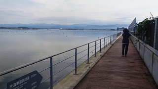2025年11月05日(水)7回 「手塚山」と「柴山潟湖畔」 ちょっと体調不良だが歩きたい老人。熊が怖くてたまらないS女史。相談して柴山潟遊歩道を少し歩き、手塚山でお昼を食べる事になった。 柴山潟のほとり。源平町。篠原古戦場。首洗い池。手塚山公園駐車場に車を置く。9.50分。 駐車場の隣に御手洗。反対側に首洗い池 芭蕉句碑 「無残やな 兜の下の きりぎりす」 実盛は白髪を黒く染めて、手塚太郎に首打ち落とされる。木曽義仲は首を抱えて嘆いている。義仲は実盛に助けられた事がある。首を洗うと白髪が現われた。兜が真ん中に置かれている。兜は小松の多太神社に現存。 荷物を車に置いて県道を横断して柴山潟の湖畔へ。首洗池のある手塚山を振り返る。 柴山潟。白山が見えた。 白山にだけ雲。 冠雪が見えるような見えないような。 雪の科学館の裏。能登地震で工事中。科学館休み。欅の大木。 工事中でウロウロ。 あちこち回って湖畔遊歩道の入口に着く。 ここから赤い線の遊歩道が始まる。 湖畔に降りる。 遊歩道に黒い物。熊の糞かなと思ったら鴨。 出発点の西の方は晴れ。 東の方の、笈ヶ岳と大笠山。 歩いて来た方面。 湯の元公園に着いた。この近くから湯が沸くらしい。浮御堂。お手洗いもある。 今日はここらから戻る。配湯所の前から町に入ったら「足の湯えんがわ」があった。靴を脱いで足湯堪能。11.20分。 この後は、片山津温泉の広い通りで、ぶらぶらと手塚山公園に戻る。廃業した旅館や飲み屋を多く見かける。 車まで戻り、荷物を担いで駐車場の階段を登り、芝生広場の展望デッキの上で昼食。12.50分。誰も登って来ない。 食事を済ませて、すぐ近くの物見櫓。 登る。下に兜の宮。昔は木造だった。 柴山潟。 物見櫓の横の茂みを少し掻き分けて入ると、「4等三角点・点名は手塚山・標高は15m」。ここが手塚山の頂上である。加賀市で一番低い山とか。展望無し。 手塚山を降りた。8.100歩。何とか歩けて良かった。暖かい日で良かった。 ■次回登山は、11/8「加賀市中央公園「」へ■ 2024年05月19日(日)6回 「手塚山」より「実盛塚」往復 私の親父の俳句に「篠原や矢叫びに似し秋の風」がある。何処かの句会で入選した自慢の句。自作の俳句と絵の色紙が残っている。 片山津の柴山潟のほとり、首洗い池の駐車場に車を置く。後ろが「手塚山」。篠原古戦場の碑。親父の詠んだ俳句の舞台である。S女史と歩きに来た。 平家方の斎藤実盛、老人なれば白髪頭を黒く染め、唯一人戦えど首打ち落される。 実盛ならば白髪のはず。池で首を洗うと白髪となり実盛と判明。首を抱く木曽義仲、右に首打ち取った手塚太郎・真ん中に謂れを知る樋口次郎。義仲は若き頃に実盛の世話になった事がある様だ。 義仲は実盛の兜を小松市の多太神社に供養を頼み納めた。芭蕉が多太神社を訪れ「無残やな甲の下のきりぎりす」と詠んだ。その句碑。 首洗い池の向こうに柴山潟。白山も見える。 手塚山に登る。実盛を討った手塚太郎による山の名前。加賀市で一番低い山。との事である。 トベラ スイカズラ ノイバラ エゴノキ ガマズミ 物見櫓の展望台。手前に「兜の宮」の祠。 櫓に上がると白山が見える。 櫓の後ろの藪に入ると三角点がある。「4等三角点・点名は手塚山。15m」 遊歩道で国立病院の方へ降りる。遊歩道は行止りだが覗くと昔の標識が残る。 廃道を適当に歩いて広場に降りる。 病院前の広場を横切り、農道に降りて歩く。 キンケイギク ハマダイコン キミガヨラン 白山の見える農道を行く。 前方に見えた来た小山に三角点があり、右の下った所に「実盛塚」がある。 山のすそを回り込むと、山に入る作業道がある。 今までと様子が違いとても倒木が多い。 地理院地図には作業道多数。地図を見ながら歩く。 斜面に赤いテープが続く。三角点を探す人が居る様だ、 小松の林の中「3等三角点・点名は寺森・21m」 また作業道に戻り「実盛塚」のある広場を目指す。 シロツメクサ スイカズラ ニガナ ニセアカシヤ ハマヒルガオ 上手い具合に「実盛塚」のある広場に出た。あずま屋で昼食。 実盛の遺骸を埋めたと伝わる「実盛塚」 車道に出て戻り始める。 田んぼ道を歩いて柴山潟より日本海に続く「新堀川」に沿って歩く。 トベラ 柴山潟の源平橋まで戻ってきた。柴山潟の上に「白山」。すぐ横が駐車場。 家にいつも飾ってある親父の書いた色紙。俳句も自作。多太神社にある兜の絵。 亡くなった親父の、同じ年齢になったなー。 ■次回登山は、5/22「蛇谷自然公園」へ■ 2023年05月31日(水)5回 「手塚山」より「柴山潟一周」 ![]() 片山津温泉の首洗い池の上の「手塚山」は、加賀市で一番低い山だとか。N女史と健康登山、今日は「手塚山」より「柴山潟一周」の予定。9.30分に手塚山公園の駐車場に車を置く。後ろの階段を登る。9.30分。 ![]() すぐ手塚山公園広場。 ![]() 公園の隅の物見櫓展望台、石の祠は「兜の宮」、立替られた。物見櫓の裏の藪へ入ると三角点がある。 ![]() 「4等三角点・手塚山