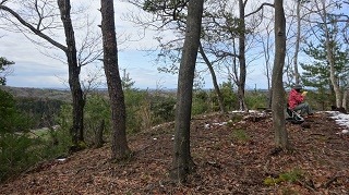 2009年04月18日(土)7回 瀬領三角点探索 三角点「波佐羅」より戻って(西尾観音山参照)、「せせらぎの郷」まで戻り、お茶を仕入れて「瀬領」三角点を確認に行く。この三角点は「おくりび山」の、道路を隔てた反対側の山の上にある。道は無い。 これもコマQさんのページに記録がある。地図を見ると、林道「湯の谷線」よりも一本手前の、林道脇の小山の上に三角点がある。山は一つだけで一番高いから、とにかく高い所へ登ればたどり着きそうだ。 ![]() 適当に入り込んだらすぐ行き止まりになった。別の林道だった。もどって次の林道に入ったら、三角点のあるほうの上から、カモシカが覗いていた。その先の三叉路に小さな小屋があり、道が広くなり四台の福井ナンバーの車が留まっていた。そこに並べて車を置かせて貰う。どうも杉林の下刈りの業者らしい。さっきカモシカが覗いていた地点まで戻り、小川を渡って谷になっている所を登って行く。尾根は急斜面で取り付きにくそうだ。「ここは間伐しませんH21.3」の札が提げてある。 ![]() 谷を詰めて尾根に出て、左の方へ段々登ってゆくと、一番高い所に三角点はあった。 ![]() 雑木林の中で展望は無し。かすかにせせらぎの郷方面に水田が見える。 ![]()