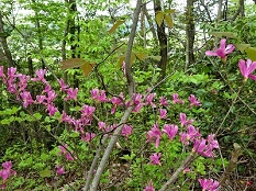 2006年04月24日(月)4回 葛葉谷口-木屋尻口 ![]() 「おくりび山」4回目である。午前の仕事を済ませて、お天気が良いので「おくりび山」で昼食を食べようと、袋ラーメンをもって出かける。自宅より25分。宮乃谷口に車を置く。12時より歩き出す。立札に拠れば「宮乃谷コース約1時間」「葛葉谷コース約1時間30分」と書いてある。宮乃谷コースは頂上を通らずにすぐに展望台の方へ登る。葛葉谷コースは歩き出して50mくらいで、右の斜面に取り付き尾根上まで登る。もう「ツツジ」が咲いている。 ![]() 尾根上までは少し急坂で、尾根に登れば緩やかな歩きとなる。2っか3っ目の瘤が頂上である。途中下の窪地に白いカモシカがこちらを眺めていた。カメラを取り出したら逃げられた。頂上表示は無く5番の案内杭がある。6番の案内杭は分岐になっており左に入る。右に入ると送電線塔を通り下山してしまう。7番の案内杭も分岐にありここも左に入る。直進する道はまだ降りたことが無いからどこに出るか知らない。 ![]() 12番の案内杭で左に宮乃谷コースが合流する。しばらくで展望台に着く。今日は黄砂がひどくて遠くは黄色く霞んでいる。展望台下の窪地の登山路に腰を下ろし、コッフェルで湯を沸かしラーメンを作り、コーヒーを沸かして飲む。これは「イカリソウ」。 ![]() 風の音と、鳥の声、と「タムシバ」。30分も居て降り始める。 ![]() この白い花はなんという名前だろう。図鑑でも買わなくてはいけないな。(調べたらどうも「ミヤマカタバミ」らしい) ![]() 下まで降りたら「ヤマブキ」がきれいだ。車まで戻って2時だ。丁度2時間の行程だ。 せせらぎの郷で入浴して帰ろうと思っていたのに、今日は月曜日で休みだった。残念。 ![]() 帰りに布橋の「水芭蕉」を見に寄った。せせらぎの郷より布橋町へ抜ける林道を行くと5分で着く。もう盛りは過ぎたが、こんな平地に百株ほどある。 ![]() ついでにもう一つ、布橋町より鳥越に抜ける林道に入り5分で松岡町の「知恵子桜」を見てきた。 水芭蕉もしだれ桜も新聞に記事として載っていたが、来るのが遅れて盛りは過ぎていた。 |