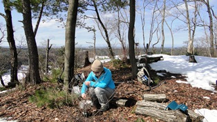 2010年03月21日(日)8回 木屋尻口-葛葉谷-瀬領三角点 ![]() 春めいてきた。低い山なら、花が咲き出したかな?と「おくりび山」に春を探しに行く。お天気が悪くて時々雨が落ちる。今日はN女史とN氏の三人。N氏は大分ベテランであるが、こんな低い山でも、地図を用意して付き合ってくれる。せせらぎの郷に車を置く。9.50分.歩き出す。 ![]() 「イチリンソウ」が咲き出した。 ![]() 第二展望台。 ![]() 「ショウジョウバカマ」名前の由来は「猩々袴」だと思う。能楽師の端くれとしては、能楽の猩々の袴の色は、もっと真っ赤で、ピンク色には違和感を感じる。 ![]() 「ミヤマシキミ」の花も咲き出した。 ![]() ちょっと開けた尾根の上で、N女史に「ぜんざい」を作ってもらう。これがまた美味い。 ![]() 今日は隣の山の「瀬領」三角点の再訪も予定しているので、頂上から鉄塔を通る「木落しコース」を降りる予定だったが、通行止めになっていた。荒れているらしい。「宮乃谷口」に出て、そのまま布橋に出る車の通る道を歩いてから、右の林道に入る。 ![]() 三角点まで道が無いので、適当に歩きやすい右手の、最初の谷を登りだす。前回は車で中まで入ったので、もうひとつ先の谷を登ったようだ。谷の上から左の尾根に取り付く。少し藪がきつい。 ![]() 尾根に登り付くと、少し歩きやすくなる。椿の木が多くて花をつけている。一番高いところに三角点がある。前回無かった「加賀低山徘徊部」の、立派な札が下がっている。12.10分。 ![]() ここの三角点は、頭が少ししか出ていないので、赤いテープや木札が下がっていないと、見過ごしてしまいそうだ。 ![]() 降りは、谷に下りずに尾根を直進したら、登りだした時の、谷の入り口に出た。登るときは急坂でとっつき難いが、一つ目の谷の左の尾根に、いきなり取り付いた方が一番登りやすいかもしれない。「ネコメソウ」が咲いている。 12.50分。雨で、頂上で食事が出来なかったので、せせらぎの郷でうどんを食べて風呂に入った。 |