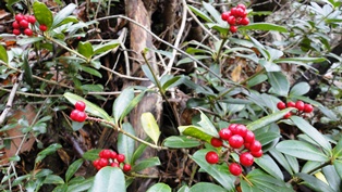 2012年12月08日(土)13回 木屋尻口-葛葉谷口 ![]() 権現山へ登る予定が大寒波襲来。北海道は12月にしては大積雪のようだ。加賀も降水確率100%で風も強い。雪は降っていなかったが用心して中止とした。一度中止にしたが、思ったより荒れないので、11.00時に温泉と散歩を兼ねて「おくりび山」を歩く。木屋尻口はイノシシ対策電気柵。跨いで通る。 ![]() 「木屋尻展望台」へ行き、戻って「おくりび展望台」に11.30分到着。 ![]() 風がゴーゴーと凄まじい。しかし雨は大したことが無い。権現山登山決行でもよかったかな。大きなみずみずしいナメコをゲット。 ![]() この山には「シキミ」が多く生えている。この時期赤い実を付けている。 ![]() 12.15分、「葛葉谷展望台」到着。海が見える。ポットのお湯でホットコーヒー。サンキュー。 ![]() 葛葉谷登山口へ降りたら、登り口の先に砂防ダムの建設中。こんな小さい谷にもダムが必要なのか。 13.00時車に到着。せせらぎの郷で入浴。大きな大根2本買って帰る。夜S女史よりメールが来た。滝ヶ原は雪で真っ白になったぞー。と。 |
