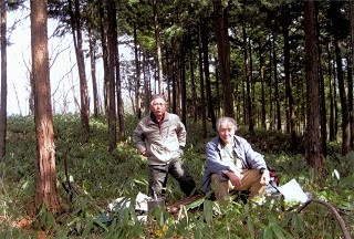 夕方から用事があるので、証拠写真を撮って下山に掛かる。所が迷ってしまった。赤いテープの通りに下りてきたのだが、登る時に少しウロウロしたので、方向が取れなくなった。一度林道に出たのだが、別の林道のような気がして、このまま降りると、とんでもない所へ出そうで、また登り返したりした。方向音痴もいいとこだ。 とうとう間違っていると判っていて、降りやすい谷を下りたら、そこは国道416号線で「布橋町」だった。少し先にドーム型の喫茶店「花・水・樹」が在ったので、コーヒーを飲みながらタクシーを頼んだら、喫茶店のマスターが、俺が送ってゆくと言ってくれた。小さな軽四は林道をぶっ飛ばし、あっという間に車を置いた地点まで登ってくれた。お蔭で、てっきり間に合わないと思っていた夕方からの会合に間に合った。これは観音堂にお賽銭をあげた効用に違いない。 同行のS女史と、喫茶店のマスターに、色々迷惑を掛けた「波沙羅三角点」探しだった。 「西尾観音山」には三角点は無い。この波佐羅三角点は、西尾観音山より国道416号を隔てた、向かい側の山の中にある。 上の項に続く |