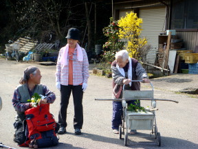 我々は70才越え老人コンビと、SN女性コンビのフルメンバーが揃った。この時期、花の咲き出した低山逍遥を楽しんでいる。歩き出した林道が、以前より広くなり、周りの杉林の下刈りや整備で、明るい感じになった。お梅地蔵も雰囲気が変わった。美人になったような。