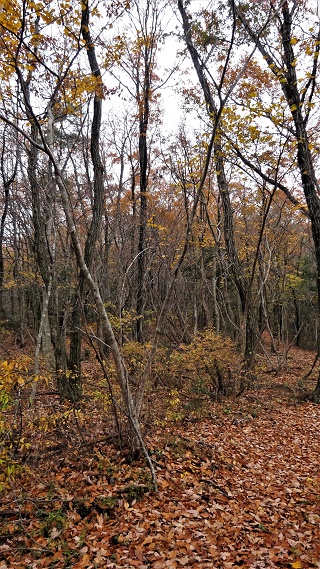倒木が何本も道を塞いでいる。2度ほど上から強行突破した事がある。何とか通過。