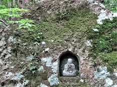 すぐに「岩倉霊水」の水場。ここにも石仏が置いてある。
