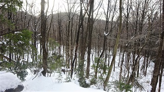 さむらい道の分岐の石碑から、さむらい道に入ったが、積雪の為に道が判らなくなった。適当に歩いていたが、さすがに心配になって、お梅道の方へ斜面を降って行ったら、なんとか登山路に出た。道は尾根を通っていたような気がしていたが、実際は斜面を横切っていた。変な思い込みはしてはいけないな。時期遅れの大きなナメコを発見。しかもみずみずしい。13.05分、車に到着。キノコは早速家に帰ってナメコ汁になった。