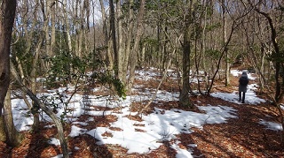 さむらい道はお梅地蔵コースと並行に走る尾根道である。少しだけ雪が残る。