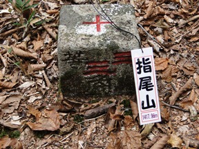 三角点は登山路を少し下がった地点にある。うっかりすると見落としてしまう。