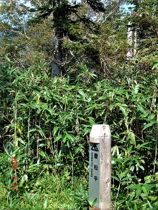 尾根に着くと壊れた標識に「ここはシマイ馬場・1230m」と書き込んである。尾根を進む。