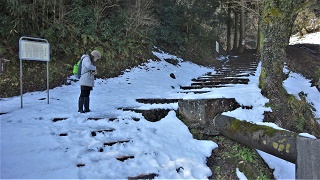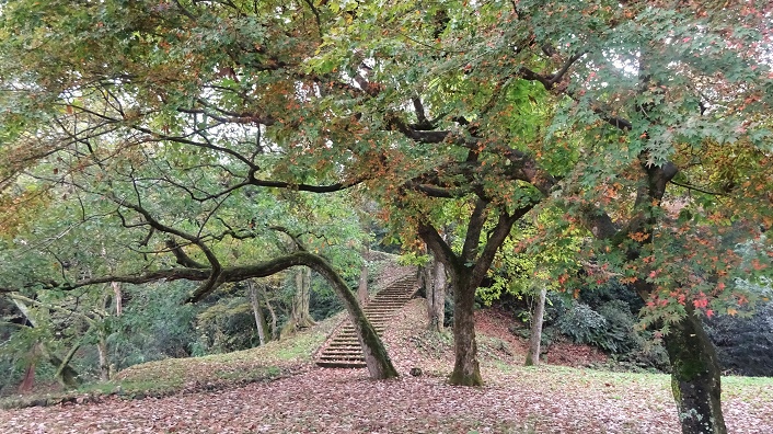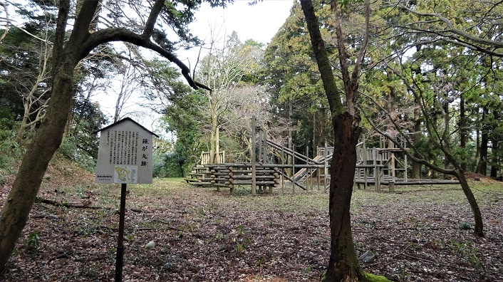 2025年04月19日(土)11回 工事中です書き掛け ■次回登山は、4/26「奥城山」へ■ 2025年02月27日(木)10回 「錦城山」を一周 健康徘徊。2月に入って雪が積もり、老人はランドマークの無い公園や近所ばかり。今日は一応山と云えば山である。「錦城山駐車場」の由来版。 425年前の関ヶ原の戦いの前、前田利長は徳川方、山口玄蕃は豊臣方で戦うも、あえなくも落城し山口玄蕃は死亡。前田利長軍は金沢に帰る途中、小松の浅井畷の戦いをしている。この間木場潟から浅井畷古戦場まで歩いたばかり。 小学校の隣の錦城山登山口駐車場は、工事中だが停める事は出来る。10時。 長靴登山。思ったより雪が少なくて一安心。 登り出してすぐの分岐を、「東丸跡」の方へ折り返す。 「東丸跡」 東丸の隅に「深田久弥百名山碑」がある。日本百名山発刊50周年記念の碑。今日は白山は見えず。 歩くのが目的。一番大廻りの外側遊歩道を歩く。 「鐘が丸跡」の方へ登る。 鐘が丸の外側を周る。「骨が谷」と云う所が近く。合戦の中心地らしい。 少し降りて「局谷」への分岐。この右の方が本丸の下になり、局たちが身を投げて死んだ。局の霊が蛇となりカンザシを挿した蛇として出るそうな。S女史が蛇を探し出かけた。俺は止めとく。 先に「西の丸跡」へ行く。蛇は出なかったようだ。S女史が戻ってきた。 「西の丸跡」通過。西の方が少し見える。 「馬洗い池」を通る。 「三の丸(北の丸)跡」を通る。 大木が多い。一国一城令により城は閉じたが、一般の人は入れなかったので、深い森となった。 分岐から「戸次丸跡」を往復する。 向こうに「戸次丸跡」の曲輪(平地)が見えてきた。 「戸次丸跡」も展望無し。この先降りる道無し。戻ります。大木が多い。 分岐から「二の丸跡」に登る。隅にあずま屋がある。 二の丸跡から「馬洗い池」の反対側を通る。 大きな木の横を通り「本丸跡」へ登る。 本丸跡に着くと丸い「本丸櫓台跡」がある。裏から登る。ここが「錦城山」の頂上である。 表に降りると「山口玄蕃顕彰碑」がある。 本丸の隅に「あずま屋」がある。11.40分。昼食。あずま屋の前にテラス。木が茂り白山の方は見えず。 昼食を済ませて大聖寺町の方へ降りる。 雪の消えた所に「フキノトウ」。 カタバミ花の蕾もある。 ![]() S女史写す。 駐車場の車が見えてきた。 駐車場の隣の忠霊塔の前まで行って見た。13時。 3時間の徘徊でした。 ■次回登山は、3/1能美市「猫山」へ■ 2024年04月14日(日)9回 「錦城山」を一周 左目の白内障の手術をして一泊入院。手術より4日目に歩きに来た。自分として歩かないとおかしくなりそう。S女史にエスコートを頼む。 10.30分。大聖寺の錦城小学校の運動場向かいの駐車場に車を置く。桜が満開。 少し登ってすぐ「東丸」の方へ切り返して登る。 東丸跡に登り着く。 東丸跡の隅に「深田久弥日本百名山発刊50周年の碑」がある。いつもは白山が見えるが、今日は霞んでいる。 イカリソウ エンレイソウ マムシグサ シャガ キンポウゲ スミレ 続いて「鐘ヶ丸跡」を通る。いろんな花が咲き出した。 「骨が谷」を通る。崖のふちの道。激戦地。 「局谷」に降りる。お局たちが自害したとか。カンザシを挿した蛇が出るそうな。 マムシグサを多数見掛た。お局様では無いでしょうね。 マムシグサ エンレイソウ ハコベ 西ノ丸の方へ。 ムラサキケマン アオキ マムシグサ 黒色 ナルコユリ ナルコユリ ホウチャクソウ 「西の丸跡」に到着。展望あり。桜。 「馬洗い池」 三の丸跡へ この辺りが「三の丸跡」 分岐から「戸次丸跡」を往復。 向こうの高台が「戸次丸跡」 べっきまると読む。 特に展望無し。新緑になった。 戻って「二の丸跡」に登る。あずま屋がある。 あずま屋で昼食。登山者一人通過。 本丸到着の方へ。「馬洗い池」を反対側より見る。 巨木の横から「本丸跡」に登る。 一番高い地点に裏から登る。「本丸櫓台跡」で標高65m。ここが錦城山の頂上。展望無し。 ピーク下の「山口玄蕃顕彰碑」に降りる。落城で亡くなった藩主らしい。 タンポポ フキ ネコノメソウ カエデ ヤブイチゴ ヤマブキ ヒメオドリコソウ ヘビイチゴ ニシキゴロモ 本丸のあずま屋。展望が悪くなった。 下山開始。少し降りると桜。 展望がある。 山もかすかに見える。 駐車場に置いた車が見えてきた。急に暖かくなり一度に花が咲き出した錦城山でした。 ■次回登山は、4/17「椿山-高尾山」へ■ 2023年01月11日(水)8回 「錦城山」を一周。 ![]() S女史とは今年最初の山歩き。あまり身体の調子が良くないようで、楽な山にしようと「錦城山」になった。私も低い山大賛成。10.00時にいつもの駐車場。登城口に「大聖寺城跡イラストマップ」が置いてある。❶番から⓱番までのポイントが書き込んである。 ![]() ❶番から⓱番まで通して歩くのを「名城・大聖寺城跡完全制覇コース」としている。100分掛るらしい。今日はこのコースを逆回りで歩く予定。 ![]() 少し登るとすぐ「東丸」への分岐。階段を登るとすぐ東丸に到着。 ![