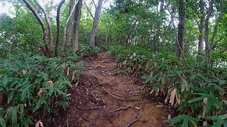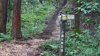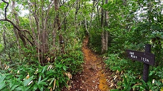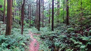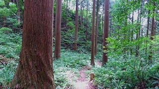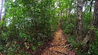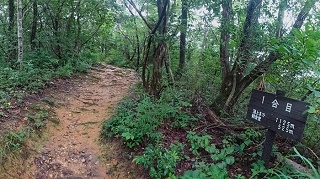 登り、霊水堂より45分。下り、新道経由で林道まで1時間。さらに車まで20分もどる。