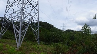 二つ目の鉄塔が見えてきた。先程の大黒部幹線とは違う系統の送電線。