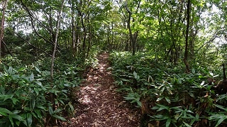 観音堂から先の道は、少し緩やかになり、新緑が気持ちよい。