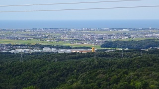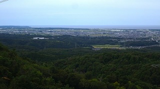 眺めは抜群です。加賀平野が一望できます。白山の方はこの先頂上を越え、少し下がると送電塔があり、ここから白山が望めます。