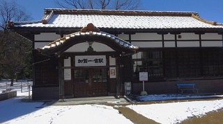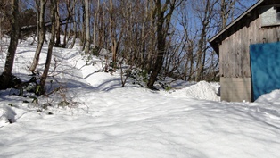 ![]() 遊歩道は「白山青年の家」の裏に降りる。 ![]() 表に周ると「舟見山縄文遺跡」がある。 ![]() さらに「ふれあい昆虫館」を通って鶴来の町へ降りる。 ![]() 見当をつけて駐車場を目指して裏道を主に歩いてゆくと「波切不動明王堂」があった。中に岩に彫られた「不動明王」があり、他に「釈迦」「文殊」「金剛」の菩薩三尊があった。 1300年前、泰澄大師36歳、白山に登らんと舟岡山の麓妙法の石窟に於いて、日夜観念修行して、不動明王を岸壁に刻み山上の安穏と国土安静を祈念した。縁起を書いた額が堂内に掛かっている。まだまだ続くが、ここまでにしておく。![]() 16.25分に一周して車に戻った。 今年も元気で歩ける年だといいですね。 ■次回登山は、1/4「二堂山」へ■ 2016年04月29日(祭)7回 「舟岡山」を散策 いよいよ大型連休。天気が悪いので今日は、どこも歩かないつもりだったが、午後になって晴れてきたのでちょっと「舟岡山」へ歩きに来た。この間奥獅子吼山に登った時、上から舟岡山が見えた。しばらく歩いていないなーとその時思った。ちょっと一時間の散歩の予定。 14.45分に白山比咩神社の駐車場に到着。この間登った奥獅子吼山への稜線が見える。靴だけ履いてシャガ、エンゴサクの咲く舟岡山城址に入ってゆく。 ![]() ![]() ![]() 山全体は杉の林に覆われていて展望が無いが、一か所だけ手取川の見える所がある。 ![]() 四等三角点がある。知らない人が多い様だ。地理院地図に印があるので地図をよく見て探してください。片方が崖になった高台の上です。特に山らしくありません。 ![]() ![]() ![]() 舟岡山を抜けると白山青年の家の裏に出る。表に回ると縄文遺跡の跡があり、復元された住居がある。 ![]() また舟岡山に戻る。ホウチャクソウ。クサイチゴ。キツネノボタン?。ツツジ。ネコノメソウ。マムシグサ。いつもと違う道を降りようと思い、東側の東口へ降りたら、少し藪になって居た。 ![]() ![]() ![]() ![]() ![]() ![]() ![]() まんまるの石が鎮座していた、白山神霊と書いてあるようだ。何かの宗教施設らしい処へ出た。 16.10分に駐車場に到着。 ★次項2016年第37回登山は、4/30日「菅倉山」へ★ 2012年12月29日(土)6回 山麓駅-「後高山」-金剣宮 ![]() 「肥満解消今年最終登山暇人参加歓迎」とメールでサポートを呼びかけたら、3人になった。山は「後高山」にした。何年か前、金剣宮の横より風吹峠に登り、五万堂峠を経由して歩いた事がある。それを思い出してその反対廻りで歩く事にした。9.30分、獅子吼のゴンドラ駅より登り出す。 ![]() 冬型でずーっと天気が悪かったが、上手い具合に今日だけは晴れている。雪の様子が判らない。カンジキは持ってきたが山を眺めて、大丈夫だろうと車に置いて出発。尾根に登り着いたら雪が深くなった。向うに「御堂山」山が見える。 ![]() 11.45分、五万堂小屋に私がだいぶ遅れて到着。小屋の中に動物のウンチがある。小屋だいぶ傷んできた。御地蔵さん3体が置いてあるが、床が抜けてひっくり返らないか心配。昭和9年に建てたと書いてある。私の生まれる前だ。 スキー場の方へ向かって出発。途中凄く展望が良い。 ![]() ![]() 11.20分、ゲレンデの下の無料休憩所に入り込んで昼食。S女史が大きな鍋を持ち込んで「鶏鍋」。いつもありがとうございます。窓からゲレンデが一望できるが、誰も居ない。見た目はスキーが出来そうだが、これくらいの積雪では無理なのかな?。 ![]() 南の方は富士写ヶ岳から鷲走ヶ岳辺りまでくっきりと続いている。白山は奥獅子吼山の陰で見えない。 ゲレンデのふちの歩道を登る。振り返ると休憩所の上に奥獅子吼山が見える。 ![]() ゴンドラ駅でトイレを拝借。こんなにお天気が良いのに、雪遊びの子ども連れが5.6人いるだけ。頂上の獅子吼白山比咩神社まで来ると医王山が見える。その右側に遠く北アルプスが望める。ちょっと雲が掛かっている。 ![]() ![]() この辺りは雪が深い。電波塔の裏辺りから降りるのだが、降り口が判らない。適当に見当をつけて斜面を降りだす。雪が深い。時々膝上いっぱいまで踏み込んで、とても歩き難い。途中で標識を見付けて一安心 。先頭をベテランのN氏が歩いているので安心。 ![]() この先も道が判らず尾根をひたすら進む。右下にようやく林道が見えてくる。ようやく林道に降り立ったら標識があった。上手い具合に夏道通りに降りたようだ。林道を少し歩いて風吹峠をカットして、杉林の中を降りる。13.50分。ここも道は判らず見当である。川に降り立ち川沿いの荒れた所を歩く。道か道でないか判らない。 ![]() 14.20分、砂防ダムを通過。ここから林道歩きとなる。林道はちょっと長い。団地に出たらぶらぶらと通りを歩いて車まで戻る。15.00時着。以前歩いた事があり、天気も良かったので、特に心配したことも無かったが、雪のある時は、初めての人は登山路が判り難いので注意。 ![]() いつも歩かない県道の、幼稚園の運動場で、「名勝鶴来八景、後高山朝霞」の石碑を見付けた。向こうに今歩い