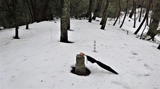 ここから梯川を河口に向かって歩く。とにかく遠い。JRの下を抜け、大川町の橋を渡り、天満宮の堤防を歩こうとしたら、ここも堤防工事で重機が置いてあり堤防が通れない。天満宮の中を通り抜ける。天満宮の裏も大工事だ。天満宮が移転を断ったので河の中の島にするのだそうだ。白江三角点から二堂山の「安宅三角点」まで、歩き続けて85分。16.05分に着いた。途中でウォーキングの人が何人も追い抜いて行った。自分の歩くスピードの遅さにガックリ。 ![]() 欲張って帰り道にもう一ヵ所周る事にした。空港の西側の「三等三角点・鶴ヶ島」だ。鶴ヶ島は地名だったと思うが、今は地図にはその名前は無い。安宅新町を目指し、高速道路の下を抜け、安宅新町の信号を200mほど進む。16.50分に次の信号「安宅新町南」に着く。この信号の手前海側の道路沿いに在る筈だった。道沿いは空地になっている。楽勝かと思っていたのに見付からない。場所を広げて歩き廻ったが見付からなかった。 諦めて帰る事にした。早くも薄暗くなってきた。空港の前を通り大通りを一直線。すぐ真っ暗になった。1時間以上も掛かって自宅に到着。足が棒になった。 去年の暮、「加賀低山徘徊部」のホームページを見付けていた。どこの三角点を訪ねても、木彫りの綺麗な低山徘徊部の三角点札が下っていた。いつも敬意を払っていた。正月3日にHPを拝見していたら「鶴ヶ島」の三角点の記事があった。2009.12に写した三角点があった。そして2010.7に再度訪れた時は、道路拡張で亡失と書いてあった。在った場所は私の探していた所に間違いない。 ▲次回登山は、2012/01/07「国見台山」へ▲ 2011年01月03日(月)6回 初詣四社巡り「二堂山」 ![]() 正月寒波も一休み。今日一日だけは、曇りと云う予報だが、青空がのぞいてきた。正月の暴飲暴食の為に太った、体を少しでも元に戻そうと、12.25分に登山靴を履いて、ペットボトル一本持って自宅を出発。目的地は安宅町の、住吉神社のある「二堂山」 12.35分。「諏訪神社」に初詣。芭蕉が寄ったこともある神社である。「牛若松」と云う、弁慶お手植えの松がある。 ![]() 12.50分、わが母校「小松高校」の、運動場の隅の、天守閣の上の、「小松・三角点」。 天守閣の上から、今日は珍しく「白山」が拝める。その名の通り純白である。 ![]() ![]() 13.10分。「稲荷神社」に初詣。ここは昔の小松城の、城内であったらしい。狛犬ではなくて、キツネさんである。 ![]() 13.20分。「小松天満宮」に初詣。この十五重の石塔は、珍しいものらしい。天満宮は小松城の鬼門に建てられているらしい。 ![]() 梯川の堤防を、てくてく歩き、河口の住吉橋を渡る。橋の上から、白山を望む。 ![]() 13.20分。「住吉神社」に初詣。神社の裏に回ると郷土の作家「森山啓」の文学碑がある。碑の裏に入り込み、30mほど先に「安宅・三角点」がある。道が無いから誰も気が付かず、訪れる人は無い。文字面が赤くなっており、お正月でほろ酔い機嫌の三角点である。 ![]() 今年の「トベラ」はまだ赤い花が見えない。ワープロで「トベラ」は「海桐」と出た。こんな書き方があるのかもしれない。 また梯川の堤防を、自宅まで延々と歩く。しばらく歩いていないので、足が痛くなった。 2010年01月02日(土)5回 初詣に住吉神社「二堂山」へ 里山歩きが大人気らしい。「ふるさとの山.100山」という本に「二堂山」というのが載っていた。なんと小松の安宅の住吉神社のある山だ。安宅関のある山だ。しかも三角点があるらしい。この項を「うずまき山」から「二堂山」に変更して「二堂山」に登りにいった。 ![]() 天気予報のように正月は大荒れだが、小松は、雪はほとんど積もらなかった。元日は寝正月。今日ようやく目覚めて、安宅の住吉神社に初詣に行く。11.20.自宅発。雨が降っているので合羽を着て登山靴を履く。11.40.芦城公園の「うずまき山」を歩いて、小松高校の運動場のはずれの天主台に上る。ここは我が母校で昼休みにいつも遊びに登っていたものだ。 ![]() この上に二等三角点がある。学校時代には全然興味が無かったから、三角点があった記憶が無い。 ![]() 天主台の上から今から行く二堂山が見える。ずっと向こうの小山がそうである。 ![]() 悌川の南の土手を歩いてゆく。鴨が居る。写真を撮りに行くとすぐ逃げてしまう。これは鵜かな。 ![]() 住吉神社の正面参道は車と人でごった返している。左に回り「関の宮」の石碑の所から入ってゆく。すぐ右手が小山である。其処が一番高そうだ。 ![]() 柵があって入りにくい。前後に人がとだえた所を見計らって、柵を跨ぎ上に登ったらすぐ三角点は見付かった。松林は手入れがしてあり歩き安い。三角点の字の書いてある面が赤く塗ってある。 少し離れた所に在る三角点に似た石も、真っ赤に塗ってあった。この山に名前が在るのは知らなかった。 ![]()