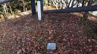 向こうに見える町は宮竹町である。三角点名は「三ツ口」になっているが、三ツ口町とはちょっと離れている。この後、灯台笹町のそばの灯台笹三角点の下の広場まで行ったが、時間も17時を回っている。この三角点は藪漕ぎが酷そうなので、今回はここまでとして、広場で相棒と別れた。今日は三角点を11か所回って探した半日でした。 2009年12月30日(水)3回 「末寺山」三角点 ![]() 「末寺山」は登ったが三角点があることは気が付かなかった。今晩から大寒波襲来とテレビが騒いでいる。が、まだ晴れている。買い物のついでに歩きに行く。今回は末寺山に最初に入る。駐車場はない。農道に車を置く。 入り口案内板を入るとすぐ分岐道の表示がある。 ![]() 右にこの表示に入ってゆく。「末寺山2号墳・前方後円墳」の標識がある。手入れのしてない只の藪の小山だ。 ![]() その先に広場があってあずま屋があった。大きな柵に囲まれた四角の給水施設がある。立ち入り禁止と書いてある。 ![]() 広場を挟んで反対側が、先の「末寺山2号墳・前方後円墳」だ。其処が一番高いので、藪を分けて登ってみたら三角点が鎮座していた。余り三角点があることは知られて居無いようだ ![]() 一周する遊歩道を進んだら、整備された5号の前方後円墳があった。少しずつ整備しているようだ。 ![]()