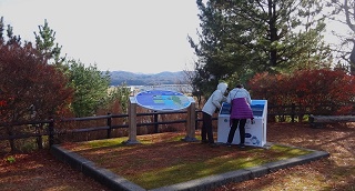 2017年01月28日(土)9回 「和田山・末寺山・秋常山」を散策 S女史と、1/7日以来初めて歩く事になった。毎月28日は、亡き奥さんの命日なのでご坊さんが、月参りのお経を挙げにいらっしゃる。午後12.30分に「なかうみの里」待ち合わせ。今日は二日前にちょっと歩いた「和田山古墳」から能美古墳群を歩く予定。待ち合わせのロードパーク「なかうみの里」に着いて、ここが「ブッショウジヤマ古墳群」だと気が付いた。トイレ棟の前に古墳が復元されている。トイレ棟の辺りに2号墳があった様で、副葬品が出たと書いていある。 ここ「なかうみの里」からは「白山」望める。今日はよく見える。 ![]() ![]() 12.30分に「ブッショウジヤマ古墳群」を出て、12.45分に「和田山古墳群」に到着。S女史は初めてらしい。二日前と同じ道を登る。「霊碑」がある。雪はもう消えている。 ![]() 「和田山城」も円墳らしい。周りが空堀になっている。円墳のほとりを進み、、二日前と同じ道を降りるのも癪だから、キャンプ場へ直接降りる道に入ったが、間違えて元の広場に出てしまった。 ![]() 遊園地とキャンプ場を横切って、二つ目の「和田山古墳」に登る。前方後円墳がある。その先より「白髭神社」に降りる。長い石段を降りると、 ![]() 神社鳥居の横に「石川縣十名所」の石碑がある。今年歩いた「寺尾観音山」の石碑と同じである。13.25分。 ![]() 白髭神社の前から北へ進み、末寺町信号を直進すると、「末寺山古墳群」に登る道がある。 ![]() 墓地を抜けるとすぐ末寺山の「あずまや」がある。目の前の瘤に三角点がある。コーヒーを入れてもらって休憩。13.45分。 ![]() コーヒーを飲み終わって、目の前の小山の「三角点」タッチして、末寺山の古墳を通って、一度和田山に置いた車まで戻る。 ![]() 車に乗り換えて「秋常山古墳群」に向かう。八幡神社に車を置く。14.45分。秋常山古墳を整備するので場所を少し下げて新しくしたらしい。鳥居の左手に見えるのが2号古墳で中が展示室になっている。 神社に参って右手に回って、北陸最大の「前方後円墳」に登る。ここは円墳の上である。広い丸い広場である。海の方を臨む。 ![]() 二号墳の後ろから1号墳を見る。左が後円墳で右下が前方墳である。 ![]() ![]() 2号墳の室内展示場は、冬季封鎖で入れなかった。外からガラス越しに「石棺」が覗けるようになっている。屋根の上に埴輪が並べてある。実際に周りにこのような埴輪が出てきたようだ。向こうに見える山は、和田山と秋常山である。 この秋常山古墳群の隣の「西山古墳群」も、国の整備の手が入ったらしい。其の内に入れるようになるだろう。楽しみだ。 帰る途中に白山が見えた。車を停めて寫した。能美市辺りからも白山は絶景。15.40分なかうみの里の車に到着。 ![]() ■次回登山は、01/31「石川縣十名所」探し。上の項■ |