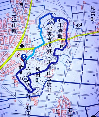 ![]() 下りは、中心部の道を降りずに、藪化してきている、円墳が並ぶ道を降りた。また末寺町を抜けて一度車に戻る。車で「秋常古墳」に移動する。 ![]() 適当に走ったら「秋常八幡宮」に着いた、後ろに古墳がそびえている。前に一度ここから登った。 ![]() 神社にお参りして、右横から古墳に登る。「秋常山一号墳」の、前方後円墳の真ん中まで階段が続いている。石川県最大の古墳で、北陸でも最大級の古墳であるらしい。 まず「前方」と呼ばれる四角い部分に登る。登ってまた山が見える。左が「和田山」で、右が「秋常山」である。 ![]() 続いて「後円」と呼ばれる丸い山に登る。 ![]() ![]() 丸い、広い広場である。海の方が少し見える。続いて「二号方墳」の方へ降りる。秋常山には古墳は二つしかない。 ![]() 二号方墳は小さいが側面に扉があり、戸を開けて入ることが出来る。 ![]() 石棺が見える。副葬品もあったらしい。頂上に埴輪が並んでいる。実際にも埴輪はあったらしい。 二号方墳空は車を置いた八幡神社が見える。 ![]() ■次回登山は、6/16加賀白峰の「西山」へ■ 2020年11月03日(祝)12回 「和田山・末寺山・資料館」散策 二日前久しぶりに能楽堂に出勤して、能「鵺」の太鼓を勤めた。半分引退の身、久しぶりの舞台は緊張する。楽屋で小松市ではよく熊がでるなー、こまつ市では無くて「くまつ市」だな、と冗談話。 ![]() 今日は午前中が晴れるらしい。急に思いつき近くを歩く事にした。一人だとさすがに熊が怖い。そこで周りが道路で、住宅があり賑やかな「和田山・末寺山・秋常山」を徘徊する事にした。和田山駐車場に到着。新しい「能美ふるさとミユージアム」が開館したようだ。建物の横の階段から登り始める。8.35分。 ![]() 登ると「霊碑」ある。昔の忠霊塔だろうな。案内板を見ると、ここに古墳が13基ある様だ。熊が怖いので見通しの良い広い遊歩道を歩く。 和田山1号墳・円墳 和田山2号墳・円墳 ![]() ![]() 和田山3号墳・円墳 和田山23号墳・円墳 ![]() ![]() 和田山4号墳・円墳 和田山6号墳・円墳 ![]() ![]() 和田山12号墳・円墳 発掘した順番で名前が付いたらしいな。一度降りて、また登る。 ![]() ![]() ![]() こちらも和田山である。昔は山続きだったが土砂が切り出されたらしい。こちらの山には古墳は一つだけある。和田山5号墳・前方後円墳。 ![]() 古墳の終わりに「白髭神社」が建っている。長い階段を降りると神社の鳥居。この神社は昔「石川縣十名勝」に選ばれていた。 ![]() 末寺山に向かって歩くと「末寺」信号に出る。左折して適当に末寺山登山口の方へ歩く。町の人に登山口を聞いたら、最近熊が出たから登らないほうが良い言う。登山口でも畑の人に用心しろよと言われる。今日は末寺山から秋常山まで歩く予定だったが、広い遊歩道で三角点まで往復で、すぐ戻る事にした。末寺山にも10基以上の古墳がある。二つだけ通る。 末寺山6号墳・前方後方墳 末寺山5号墳・前方後円墳 ![]() ![]() 一番高い所の広場にあずま屋がある。 あずま屋の前の高みに三角点がある。 ![]() ![]()