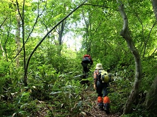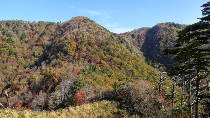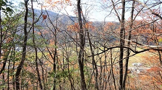 ![]() 雑木林の中で見通しは無いが、それでも到達の満足感は大きい。もし周りの木を切れば、すばらしい展望があるだろう。記念撮影をしてお湯を沸かして食事。 ![]() 木の間から笈・大笠の方が見える。真ん中は大瓢箪山かな。コマQさんの白いテープの書き込みと、金沢金三角会の赤いテープがある。一時間も居て12.55.下山開始。 下りは藪で迷いやすいが、なんとか上手い具合に元の林道に降り立った。手取ダムと手取湖が途中で見えた。ヘアピンカーブで、尾根伝いの登山路が無いか確認したら、市原の方へ降りる切開きがあった。下まで続いているか判らないが。 ![]() ![]() 林道分岐のヘアピンカーブを曲がったら、さっきまで居た頂上が見えた。一番高いところだろう。稜線の右の下に、剥げた工事現場が見える。あの少し下まで林道を歩き、30分の藪漕ぎだった。結果的に一番近い藪漕ぎだったようだ。 ![]() 最近出来上がった、尾口村の小・中合同学校が見下ろせる。国道の「濁澄橋」を渡った所で、最近まで工事をしていた。 ![]() これは「ムラサキシキブ」の実。 ![]() 林道を延々と歩くので退屈かなと思っていたが、考えていた以上に見晴らしが良い林道だ。なかなか気分の良い道である。 ![]() これは「クサギ」の実らしい。S女史に名前を教えてもらう。 ![]() これは「マムシグサ」の実だろう。彼女が持ち帰った。 ![]() 15.10.白山自然保護センターに置いた車に到着。 国道157を戻り、市原の村から、山から見えた赤い橋を渡って手取峡谷の西側の道を下る。途中振り返ると「高倉山」が「富士山」のように見える。 |