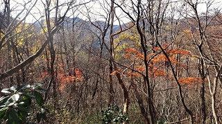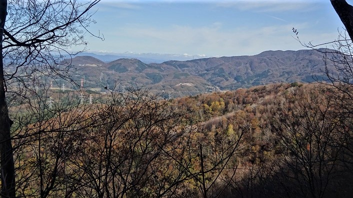 「医王山」方面。 ![]() 堂の中は物置状態 アキノキリンソウ ![]() ![]() ![]() 奥高尾山に向けてしゅっぱつ。ブナ林が続き気持ちの良い登山道。 ![]() この「ブナ林の門」を通ると、奥高尾山の頂上は近い。 ![]() ![]() 吉次山と順尾山の分岐が「奥高尾山」となっている。地図に842mと記入されている。西の方が拓かれている。昼食。13.00時。 目の下に、三角点のある「高尾山」。 ![]() その上の「医王山」の右に、富山県南砺市が見える。 ![]() 金沢市街も良く見える。 ![]() ![]() ![]() ![]() 吉次山の方へ少し進むと、高い地点に「奥高尾山」の標識がある。展望無し。食事地点より2mほど高いな。 ブナ林の頂上まで戻り、下山開始。 ![]() ![]() 16.00時に車に到着。途中で3人ほど登って来た。それ以外は誰とも遇わず、静かな山歩きだった。 ■次回登山は、9/23福井「野見ヶ岳」へ■ 2018年11月18日(日)8回 駒帰町より「吉次山」を往復 大阪のN女史が、私の「誕生日記念登山」をするから、何処へでも良いから連れて行けという。そこでこの間から考えていた金沢方面の山の中で「吉次山」を思い出した。まだ紅葉が残っているかも知れないな。4年ぶりだな。 7.30分に、小松でN・S両女史を乗せ高速に乗り、すぐ美川ICで降りてまっすぐ一直線。加賀産業道路に突き当たる。そのまま金沢方面に進むと山側環状線になり、野田山墓地を過ぎた所で環状線の脇道に入り。環状線の下を通って県道207号線を走る。駒帰町を過ぎた所に「娚杉少年の森」への林道入口がある。おとめすぎ少年の森キャンプ場の前を通り、広場に三台ほど停まっていたので車を留める。前回はもう少し先まで行けたが、今は道が悪そうだ。「金沢林業大学校の実習林の駐車スペース」に付き駐車禁止と張り紙があったが、今日は日曜でお休みの様なので留めさせてもらう。8.50分。 少し歩くと前回乗り入れた鉄塔がある。一度降ってからゆったりと登り出す。この登山路は鉄塔巡視路なので広くて手入れがしてある。紅葉している。 ![]() ![]() ![]() 一時間ほど歩いて大きな鉄塔の下で休憩。ここから鉄塔は外れてゆくので巡視路で無くなる。登山路は細くなり、大きな木が根こそぎ倒れている。今年の台風は凄かった。海の方が透けて見えてくる。登る方に山も見えてくる。 ![]() ![]() ![]() ![]() 右が「奥医王山」と「医王白兀山」、左の二つの小さい山が「キゴ山」と「戸室山」。 ![]() 地理院地図には、678mと734mの標高が記入されたピークがあり、その間にも小さなピーク。なかなか遠いなぁー。 ![]() ![]() ![]() ブナの木が多くなり葉っぱは一枚も付いていない。前方に透けて見えるピークが「吉次山」と思われる。 ![]() もうすぐ「陶石採掘場」からの登山道が合流かな、と考えていたら前方から二人が戻ってきた。話を聞いたら「陶石採掘場」からの道が合流してきていたが、その先段々と降って行くので、道を間違えたかと戻ってきたらしい。注意力が足りませんぞ。きっとどこかに標識があるはずですぞ。 ![]() 「陶石採掘場」からの合流点。やはり探したら吉次山15分の標識あり。吉次山へは一時鞍部へ降りる。鞍部から初めて富山方面が望める。遠くに山並みが見える。 ![]() 山の形から考えて「剣岳」らしい。拡大写真では「剣岳」に間違いない。隣の山は「立山」のように見えるがなー。 ![]() ![]() 吉次山頂上標識の手前30mの登山路脇に三角点がある。