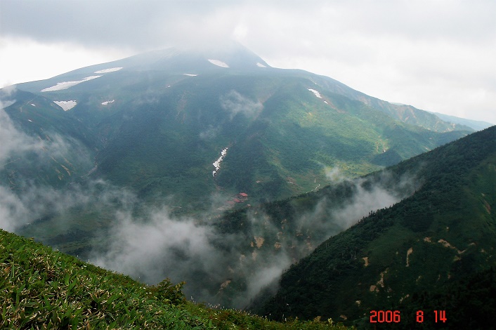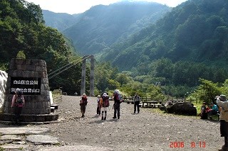 2006年08月13日(日)-15日(火)初登山 南竜-「別山」頂上往復 白山には何度も登っているが「別山」は初めてである。白山に登っていると、どこからでも望める。どっしりとした山容だ。白山を登った後、南竜小屋に泊まり、翌日小屋より登って、チブリ尾根を市ノ瀬に降りるのが普通のようである。膝が弱い私には、あの長い標高差2000mのチブリ尾根を降りる自信が無い。去年登った仲間も10時間掛かって、長くてへとへとになったと、のたもう。そこで考えたのが今回のコースだ。白山頂上を省き1日目は南竜小屋まで。2日目は小屋より別山往復でもう一泊。3日目はそのまま下山の予定。なんとも恥ずかしい老人向きコースだ。まあ本物の老人だから仕方がないか。 ![]() 第一日目、朝7時に自宅を出て、お盆の日曜、道路はスイスイで8時10分にはもう市ノ瀬に到着。ところが下の広い駐車場が満杯で、ずーっと上の長い六万橋を渡った所の駐車場に入れられた。ここも満杯に近い。今回は単独行、いつも同行願っているK君は、お盆の間に天候を見てご家族と白山登山の予定だとか。 ![]() シャトルバスに乗り換えて別当出合へ。トイレに入って、8時50分より歩き出す。今年は大雪と長梅雨のため長い間市ノ瀬まで入れなかった。観光新道も先ほどようやく通れるようになったようだ。長いつり橋を渡って、砂防新道を登る。2.3年前土石流でつり橋が流れ、今では川より随分高い位置に掛かっている。 ![]() 9時35分、歩き出して45分で中飯場に到着。なんとK君一行と遭遇。K爺さんは娘さん夫婦と孫3人のリーダーである。ここから甚之助小屋まで抜きつ抜かれつ。美味しいトマトをご馳走になる。 ![]() 甚之助避難小屋に11時30分到着。昼食をとる人で満員である。我々も昼食をとる。 ![]() 少しでも荷を減らしたいので、コンロも持ってこなかった私は、お湯を分けて貰いコーヒーを飲む。 ![]() ここでまた昨夜一緒にマージャンをしていたH君と遭遇。朝5時半出発と聞いていたので、遇わないと思っていたが、ゆっくりと食事をしていたらしい。 私も30分くらい休んで出発。12時半に黒ボコ岩への道と、南竜への道の分岐に到着。ここまで来ると俄然高山植物が多くなる。登ってきた方面が開けて、オタカラコウの咲く斜面に避難小屋の赤い屋根、登り口の別当出合いが見える。シモツケソウ、ハクサンフウロ、モミジカラマツ。 ![]() ![]() ここからは水平の歩道になる。ぐるりと弥陀ヶ原のすそを回り込むと南竜ヶ馬場が見えてくる。今日の泊まりの南竜山荘の赤い屋根も見える。今年は積雪が多かったので花の時期が遅く、お盆の今が満開の感がある。 ![]() ![]() 13時20分、南竜山荘到着。歩き出して4時間半。私としてはまずまずのペース。 一休みして花探索に出かける。夕食は5時からだ。時間はたっぷりある。 ![]() 今回の登山で撮ってきた花たち。名前は間違えているかも知れない。 ![]() ![]() ![]() クロユリ ハクサンコザクラ ニッコウキスゲ ![]() ![]() ![]() シモツケソウ モミジカラマツ イワカガミ ![]() ![]() ![]() イワハゼ タテヤマリンドウ イワイチョウ ![]() ![]() ![]() チングルマ チングルマの実 ウメバチソウ ![]() ![]() ![]() コバイケイソウ ハクサントリカブト クモマニガナ ![]() ![]() ![]() ハクサンイチゲ ミヤマダイコンソウ ヤマハハコ ![]() ![]() ![]() マイズルソウ ツルリンドウ オオバミゾホオズキ ![]() ![]() ![]() ゴゼンタチバナ シナノオトギリ タテヤマウツボグサ ![]() ![]() ![]() タカネマツムシソウ ハクサンフウロ カライトソウ ![]() ![]() ![]() ![]() ハクサンオオバコ サラシナショウマ ウサギキク イブキトラノオ ![]() 南竜山荘は静かで好きな小屋である。おまけにトイレが洋式水洗、それに温水のウォッシュレットである。まことに有り難い。午後8時に消灯で真っ暗。こんなに早く寝ることは珍しい。 第二日目、朝早くから出発する人たちがある。小屋の前で食事を作って出発してゆく人もいる。小屋の食堂は6時半でなければ開かない。少し遅いような気がするが仕方ない。6時45分出発。南竜庭園の木道を通り過ぎると、谷を隔てて目の前に油坂のジグザグ登山路が目に入る。あの頭を越えてゆくのだ。稜線の向うに御舎利山の頂きが見える。別山はその先で見えない。中々遠い。 ![]() 一度谷に降りてジグザグ道を登りだす。こちらへ登る人は少なく静かである。振り返ると白山御前峰が大きい。陰になっていた南竜山荘も見えてくる。目を凝らすと、室堂も見える。お花畑の中を登っているような感じだ。 ![]() 8時に油坂の頭に到着。前方に思いがけない景色が現れる。別山までは緩やかな尾根歩きと考えていたのに、細い尾根と岐阜県側の崩れた荒々しい光景。越えて行かねばならない幾つもの瘤。地図を見ると「大屏風」という場所らしい。 ![]() ![]() 8時25分、天池に到着。小屋より1時間40分掛かっている。小さな池の回りにハクサンコザクラ。岐阜県側の斜面にマツムシソウ、ニッコウキスゲ、ハクサンイチゲ。気持ちの良い場所である。ここ