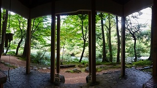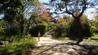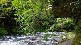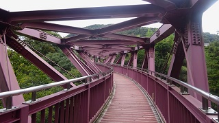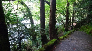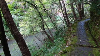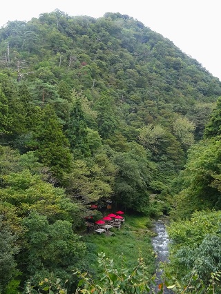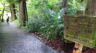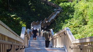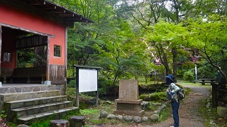2025年10月15日(水)1回 あいうえおの杜 山代温泉に居た明覚上人が、1.093年に日本最古の「五十音図」を造ったらしい。それに因んで「あいうえおの杜」と云う、変わった杜(もり)が出来た。ネットで見掛けて面白そうなので、S女史と山中温泉の「鶴仙峡」を歩く前に寄ってみた。 山代温泉の総湯の近くに、大きな駐車場があった。初めてなので何も判らない。すぐ横に新しい回廊が出来ていた。荷物無しで出発。10時。 案内板を見ても何も判らない。とりあえず最高地点の「さざえ堂」まで登ろう。 直接登る階段もあるが、この上の高台の「あいうえお学舎」まで、回廊が続いているので登る。 回廊を登る。「あいうえお学舎」まで、車椅子で登るための回廊の様だ。 学舎が見えてきた。一階が「もりのテラス」で、二階が「あいうえおギャラリー」になっていた。学舎でパンフレットを貰い、トイレを借りる。 学舎の中は周らなくて、目の前の階段で「五輪塔」の方へ登る。 「四国八十八ケ所・加賀霊場」とある。石仏の並ぶ道らしい。 「石造五輪塔」。明治の頃に建てられた「明覚上人」の供養塔らしい。 四国八十八遍路の石仏が並ぶ道。西国三十三所の石仏霊場はあちこちにあるが、四国八十八霊場の石仏霊場は初めて見た。 一体づつ石の社に入っている。車遍路だが四国八十八所は全部周った。お寺の名前があり懐かしい。 回廊の上の高台に出た。ここまで階段の回廊で登れる。昔のホテルの入口が残る。 ここから「さざえ堂」まで舗装道路。 回廊が見える。帰りに降りよう。 さざえ堂が見えてきた。 以前からあったようだ。栄螺のようにぐるぐると周りながら登る「展望台」らしい。手摺に繋がりながら登る。標高は83m。 富士写ヶ岳。水無山。 鞍掛山。 白山は雲の中。 最上階。 最上階。狭い。 下山開始。 回廊を降りる。 手摺が付いていて老人でも大丈夫。 降りる。 この辺りまで車椅子でも大丈夫。 回廊は「あいうえお学舎」の2階に繋がっていた。無料の休憩所や、子供の遊び場もある。近くにコテージも造ってある。 また回廊で駐車場まで降りた。変わった杜(もり)である。また遊びに来よう。車に乗り、今日の目的地の山中温泉の「鶴仙峡」に向かう。11.10分。 ■次回登山は、下の項に続く■ 2025年10月15日(水)2回 鶴仙峡 山中温泉の、ゆげ街道を通れ抜けると、吉祥やまなか亭の前に、こおろぎ橋無料駐車場がある。車を置く。 吉祥亭の前の一方通行の道を、下の方へ降りる様に歩き出す。11.35分。 細い道だが車も通る。 岩不動の前を通る。岩に不動明王。 こおろぎ橋を渡る。 橋の上から「鶴仙峡」 ここから川へ降りるのかと思ったら、この先20mの立札あり。 ここから鶴仙峡へ降りる。黒谷橋へ1.200m・あやとり橋へ700m。 川のふちの歩道。 大聖寺川。 川のふちは崖。苔。 手入れしてある遊歩道。 采石厳。中国の景色に似ているらしい。 崖にへばり着いてあずま屋があった。12.10分。空いていたのでここで、川を眺めて昼食。 前の遊歩道を時々人が通る。外人もいる。 ゆっくり休んで出発。対岸に時々旅館。 向こうにあやとり橋が見えてきた。 一ヶ所だけ、川床が営業中。 飲み物・スイーツは席料込。注文しないときは席料のみ。 座らず通過。不動滝が落ちていた。 あやとり橋の下を通り抜ける。 道明地蔵と慈母観音がある。 遊歩道。 川が狭くなる。 小橋が架けてある。小才橋。向こうへ登れる様だ。 岩がせり出している下を通る。 「芭蕉堂」に着いた。明治43年(1910)に、芭蕉を慕う全国俳人により芭蕉堂が建てられ、芭蕉像が安置された。03.20分。 広場にトイレもある。ここを今日の目的地にしている。戻り始める。川岸の道を歩いたら、曽良の句の柱があった。「行きゆきて たふれ伏すとも 萩の原」。 曽良は腹を壊して、山中温泉で芭蕉と別れ、この句を残して、一日先に大聖寺の全昌寺に旅立った。 先月全昌寺を訪れていて、載せている。 戻る 戻る。 あやとり橋の近くで「桜広場」の方へ登る。広場にあずま屋がある。その先にあやとり橋。 あやとり橋。 橋は高い所を通っている。 ずーっと下に、先程通ったかわどこが見える。 橋を渡るとすぐ温泉街になる。「芭蕉の館」に寄ったが、水曜日で休館日だった。残念。芭蕉と曽良の石像。曽良は身体を壊し先に帰る事になった。別れを告げている。 奥の細道の本文がある。「今日よりは 書付消さん 笠の露 芭蕉」。 笠の裏に同行二人と書いた名前を消さねばならない、これからは一人旅となるな、芭蕉。この後が9/23日に歩いた全昌寺に続く。 ゆげ街道を戻る。 向こうに駐車場が見えてきた。 14.30分。駐車場に到着。 「鶴仙峡」は歩いた覚えがあるが、いつの事か記録が無い。初めて歩くような感じで、「あいうえおの杜」と共に、楽しい散策だった。 ■次回登山は、10/21「三方岩岳」へ■ |