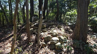 10.20分頂上着。観音堂から三角点までの道は、訪れる人が多くなったようで、踏み跡から登山路になった。三等三角点はなかなかいい顔をしている。