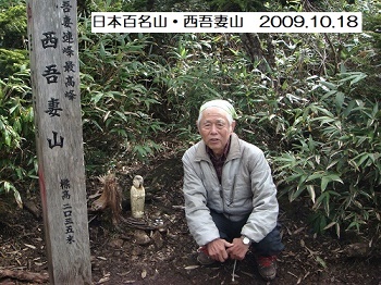登り口の曾宇町の隣村に、直下町があります。ここに三谷温泉の一軒宿「特月荘」が在ります。ここで、麻雀仲間の祝いの会がありました。その会の前に、メンバー三人で登ってきました。展望の利かない頂上で、三角点に腰を掛けてしばし団欒。月一回の麻雀仲間、М君とH君です。