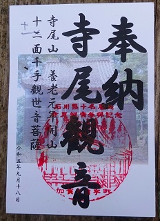 立て札によれば「寺尾山は養老元年717年に、武蔵の箕輪からきた修験僧によって開かれました。安置されている十一面観音は、曾宇の守護仏として信仰され、後に当地は大聖寺藩前田家の祈願所となりました。」