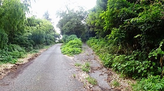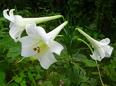 荒れた駐車場は半分藪。テッポウユリがいっぱい咲いている。