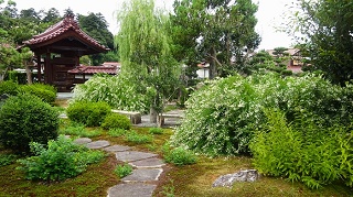 芭蕉は奥の細道の旅で、山中温泉を出発して、この全昌寺に泊っている。この寺で「庭掃いて 出でばや寺に 散る柳」と詠んでいる。柳が植えてある。