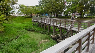 夕方17.00時、国道8号線を加賀市の方へ進み、小松バイパスの合流点を過ぎると、右側が山になる。昔この上にモーテルがあったが最近やめて廃墟になっている。このモーテルへ入る道を入ったら、目の前に大きな堤があった。今までモーテルが邪魔をしてこの道を入ったことがなかった。
