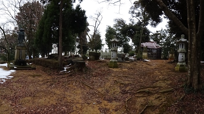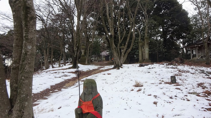 御堂の周りは、枯れた木を切り倒して、綺麗に整備してある。観音像は寒そう。
