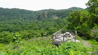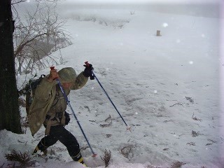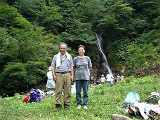 ![]() 地蔵峠まで戻って大池平の方へ下る。11.00分、大池のトイレのある休憩所に到着。一休みして、まだ寄ったことの無い三色泉を尋ねて、大池探索路を行く。11.15分「三色泉」に到着。池かと思っていたが、水の湧き出している小さな流れだった。 ![]() 11.48分、「三蛇ヶ滝」に到着。すぐ子供のラグビークラブの団体が到着。父兄付いて来ていて、途端ににぎやかになる。我々も昼食。子供たちも昼食。昼食が済むと子供たちは水遊び。水着持参の子も居て、滝つぼに飛び込み賑やかである。水が冷たいので寒い寒いと騒いでいる。 ![]() 12.40分、一時間近く居て、子供たちより先に出発。12.56分、鳶岩の見える大池に戻り、休憩所の前から「白兀山」に登る道に入る。 ![]() 13.47分、急なジグザグ道を登りきり、鳶岩から白兀山に続く尾根に登りつく。尾根を少し進むと、覗乗越の鞍部に出る。この鞍部の少し上から右に覗の休憩所に至る道が分かれている。ほとんど水平道で、14.10分に覗休憩所に到着。14.20分に「しがらくび」に置いた車に到着。 見上峠より湯涌の方へ降り、「湯楽」の立ち寄り湯に入って汗を流して帰宅する。K様、鳶岩に登る自信は付きましたか? 2006年09月17日(日)1回 しがらくび-「箱屋谷山」-大池-「白ハゲ」 午後から雨が降るらしい。まだまだ暑いから少々降られても大丈夫と、「箱屋谷山」に雨具を持って出かける。K君と8時15分に「戸室山」登山口のどんぐり食堂前の広場で待ち合わせ。金沢山側環状線が開通して、小松自宅より50分で着いた。 帰りに湯涌の温泉に寄ろうと見上峠に車を置き、車1台で医王の里を通り西尾平に着く。ここの案内図でK君に今日の予定のコースの解説を受ける。彼にとってはここは我が家の庭みたいなものだ。 ![]() なるべく歩かないでも良い様にもう少し林道を上って、「しがらくび」に車を留める。車5.6台止められる駐車場がある。9時より歩き出す。林道より登り口を少し入ると、すぐ「白兀山」への道が右に分かれる。ここを直進するとまた広い道に突き当たります。左は見上峠へ降る道、右に折れる。秋の七草の「オミナエシ(女郎花)」は知っていたが、これは「オトコエシ(男郎花)」と言うらしい。K君が教えてくれる。 ![]() 歩き出して15分で「覗休憩所」に着く。辺りが開けてきた。ここで道は二つに分かれている。小屋の右手に覗乗越を経て大池平に降りる道。左は地蔵峠を経て箱屋谷山に至る道。 ![]() 左に入り箱屋谷山を目指す。尾根道を行き、瘤を越えると前方に箱屋谷山が見えてくる。 ![]() 覗より15分。少し下って「地蔵峠」に到着。セメントで作ったお堂の中に地蔵が赤い前掛けをつけて鎮座。地蔵があるから地蔵峠。左から二俣町からの登山路が登ってきている。右は大池平へ降りる道である。昔は二俣町から医王山に入るのが表登山口であった。室生犀星もここから登山しているという看板がある。戸室山・キゴ山が良く見える。 ![]() 尾根を直進すると頂上は近い。左に原石山ビジターセンターへ降りる道が分岐し、その上の小さな池の上が頂上である。峠より15分掛からずに着いた。三角点があり西の方が切り開かれ平野が見える。 ![]() 地蔵峠まで戻り大池平の方へ降りる。途中大池平が見下ろせる所に、テラス状の展望台がある。遠くに鳶岩が見える。峠より30分くらいで大池平の休憩所に着いた。 すぐ側に大沼がある。その上に鳶岩がそびえている。ここまで誰にも遇わなかったが、ここは人気の場所で休憩所はも満員である。すぐに三蛇ヶ滝の方へ向かう。 ![]() 10時50分三蛇ヶ滝に到着。ここには誰も居なかった。上のほうが三段に分かれているので三蛇ヶ滝と言うという案内板がある。室生犀星がこの滝を作品に登場させているらしい。 ![]() 誰も居ないし、少し早いがここで昼食にする。K君が滝の横の湧き水を沸かして、薄茶のお手前。もちろん菓子持参。まったく風流である。 ![]() 周りに白い小さな花がいっぱい咲いている。「ゲンノショウコ」の花だと彼が言う。彼はまったくの物知りで尊敬しちゃう。 ![]() 1時間近くもゆっくり休んで、鳶岩に登りだす。危険だから初心者は登るべからずと書いてある。私もその初心者に入るのではないかと、少々不安である。 ![]() 三蛇ヶ滝より大沼の方へ少し戻った所に、鳶岩に登る道がある。昔登った記憶があるが、こんな急だったとは思わなかった。鎖の下がった崖を登ってゆく。斜面角度45度と書いてあるがもっと急勾配に思える。滝より30分くらいで鳶岩に到着。岩はさっき登ってきた箱屋谷山を背景にそびえている。 ![]() 実は10日ほど後にK君と、四国の石鎚山に登る予定でいる。NHKの日本の名峰という番組で、石鎚は人気名峰の2位に入っていた。おまけに鎖場が3箇所も有ると言う。その小手調べにここを経験しておこうと、彼に勧められて鳶岩に登っているのである。 鳶岩の上は狭くて、周りが切り立っており非常に怖い。若い頃の写真が残っておりこの上で立って居るが、70才近くの今は怖くて