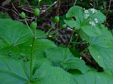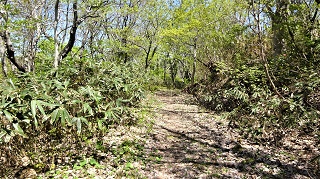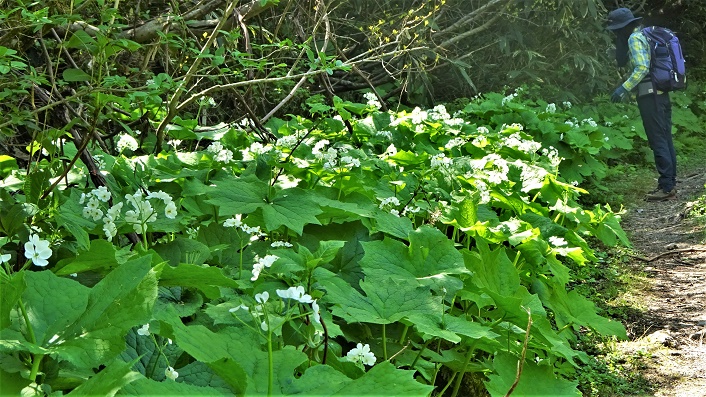 2025年05月23日(金)14回 西尾平より「箱屋谷山」往復 大好きな花「サンカヨウ」が見たくて、S女史に同行を頼み「箱屋谷山」へ。もう終わっているかも知れないと少し心配。西尾平の駐車場で金沢のA女史と待ち合わせ。10時に満車寸前の駐車場にすべり込み。 すぐ箱屋谷山へ一直線の、作業道を歩き出す。 前山の北側の作業道。 ゼンマイは無いかな?、スズタケは無いかな? 前方に黒滝山?が見えてきた。 ツバキ満開。 ツツジ満開。 キブシ ツバキ スミレ ネコノメソウ ツボスミレ? イカリソウ 覗休憩所に出た。 休憩所の後ろより富山の方面。 覗休憩所から遊歩道をさらに進むと、地図に「覗・697m」と載る分岐に出る。ここを大池平の方へ降りる。 タンポポ アオダモ クロモジ お目当ての「サンカヨウ」が、まだ残っている。 思ったよりも沢山、咲き残っている。 エンレイソウ キクザキイチゲ アケビ ニワトコ ユキザサ ホウチャクソウ? 大池平と地蔵峠を結ぶ登山道に合流。箱屋谷山に登るには遠回りだが、サンカヨウが咲く大好きの道を通ってきた。地蔵峠に登り返す。 途中の絶景展望デッキ。縄が張ってあり入れない。見たら床に穴が空いていた。 ここからはトンビ岩が見える。 「箱屋谷山」が近づいて来た。遠くに海岸線。 フキ タニウツギ 地蔵峠が見えてきた。先着仲間が日陰で昼食の用意中。仲間が一人増えていた。後から合流のT女史が、もう箱屋谷山に登り、地蔵峠で待っていた。 13時。昼食。カンパーイ。 昼食を済ませて「箱屋谷山」を往復。T女史はもう登頂しているので、リュックを預けて楽ちん。 ヒメシャガ シオデ コケイラン ヒメシャガ フジ 14時。「箱屋谷山」の頂上到着。狭い所に三角点がある。「3等三角点・点名は箱矢谷・標高は685m」 三角点の後ろに「ヒメシャガ」 頂上から宝達山らしき山が見える。 地蔵峠まで戻り下山開始。覗分岐まで戻った。 覗休憩所まで戻った。帰りは「しがらくび」に出る分岐から、尾根の登山道で降りる事にする。 下に「しがらくび」の駐車場が見える。尾根道へ。 尾根道に「前山・724m・頂上往復1分」の標識。 1分ならばと入る。大きな木が何本もある所が頂上らしい。何も無し。 シロバナキランソウ? チゴユリ ノリウツギ? 突然に西尾平の駐車場の上に出る。皆さんお待ちかね。遅れまして誠に申し訳ございません。16..00時。遅くなった。駐車場も空っぽ。 サンカヨウとヒメシャガが見られて。大満足の徘徊。 ■次回登山は、5/27尾小屋の「作事嶺」へ■ 2024年05月14日(火)13回 しがらくびより「箱屋谷山」往復 久しぶりにS女史を「サンカヨウ」を見に、去年一人で歩いた「箱屋谷山」のサンカヨウロードを案内したら、花は終わってすべて実になっていた。残念? しかし箱屋谷山の頂上に「ヒメシャガ」を見付けて嬉しかった。 見上峠から入ったが西尾平の駐車場は満車。しがらくびの駐車場も満車。その先の道の広い所車を置く。 10時半。 少し戻って、しがらくび登山口より登る。 尾根の旧道を白兀山の方へ少し進み、分岐を裏の作業道に降りる。 「覗休憩所」の方へ進む。笹藪の中から人が出てきた。ススダケ(ネマガリダケ)の筍が取れるらしい。 シオデ ユキザサ 小さなスミレ 覗休憩所に出る。この休憩所の横からも大沼に下りられる。今日はここでは無く「覗ピーク」から降りる予定。 地図に「覗・697m」と載っている地点の分岐から大沼の方へ降りる。 ツクバネウツギ 白い花 サンカヨウ この道は去年初めて歩いたが、サンカヨウが多く咲いていた。しかし今年は去年より10日ほど遅れただけなのに、もうすっかり花は散り実になっていた。 この道は大きく蛇行していてだいぶ遠回りになるが、その分坂が無くて歩きやすい。 大きなサンカヨウの群落も、すべて花は終わっていた。 ユキザサ ハンショウヅル 地蔵峠から大沼への遊歩道に合流。大沼の方へは降りず、地蔵峠の方へ登り返す。 ここに展望テラスがある。絶好の昼食場所。13時。 大沼の上のトンビ岩が見える。 昼食を済ませて地蔵峠の方へ登る。 富山県の方が見える。 小矢部市かな ? 地蔵峠に登り着く。峠の地蔵さんがある。ここから「箱屋谷山」を往復する。 ヒメシャガを見付けた。 古今和歌集に「陸奥の安積の沼の花かつみ かつみる人の恋や渡らん」と載っているそうな。芭蕉が奥の細道で、福島県郡山市の安積の沼辺りで、花かつみ花かつみと尋ね歩いたが誰も知らなかった。 ビジターセンターへ降りる分岐がある。通過。 私が芭蕉の追っかけで安積の沼の「安積山公園」に行った事がある。そこで初めて幻の花「花かつみ」が「ヒメシャガ」と認定されたことを知る。ヒメシャガを見るたびに、芭蕉の事を思い出す。 突き当りの小さな沼。この横を登ると頂上。 「箱屋谷山」の狭い頂上に到着。行き止まりで三角点がある。 「3等三角点・点名は箱矢谷・685m」 三角点の前にも後ろにも「ヒメシャガ」 能登の宝達山が見える。 昔作った山札が残っていたので提げた。下山開始。 